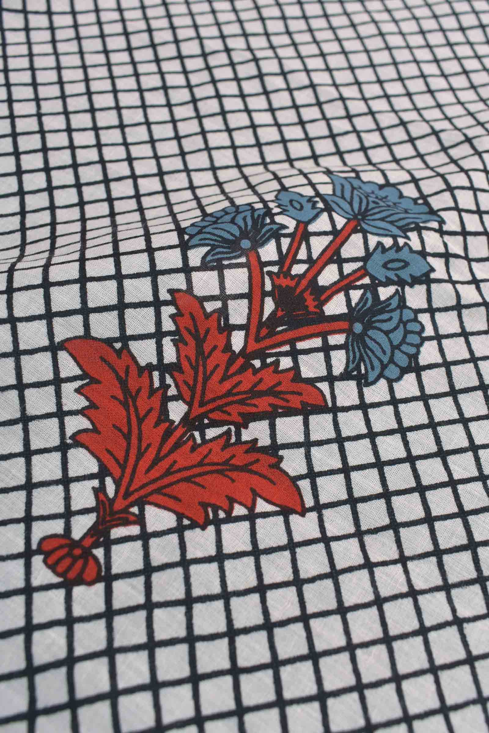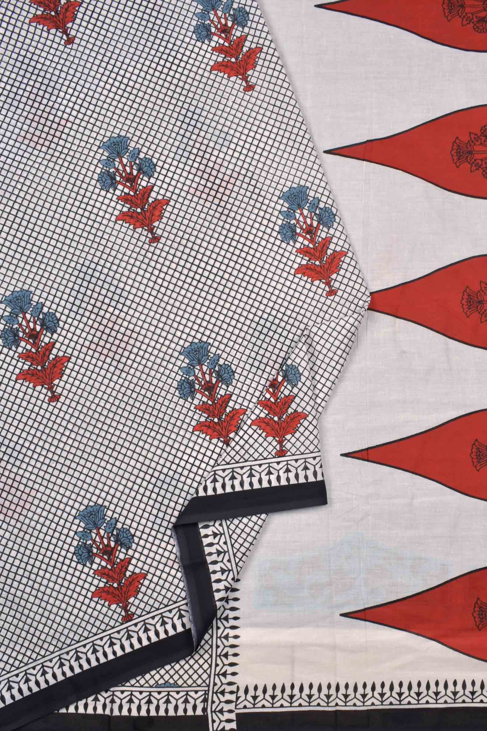 White And Black Jaipur Cotton Mini Checks Floral Printed Saree