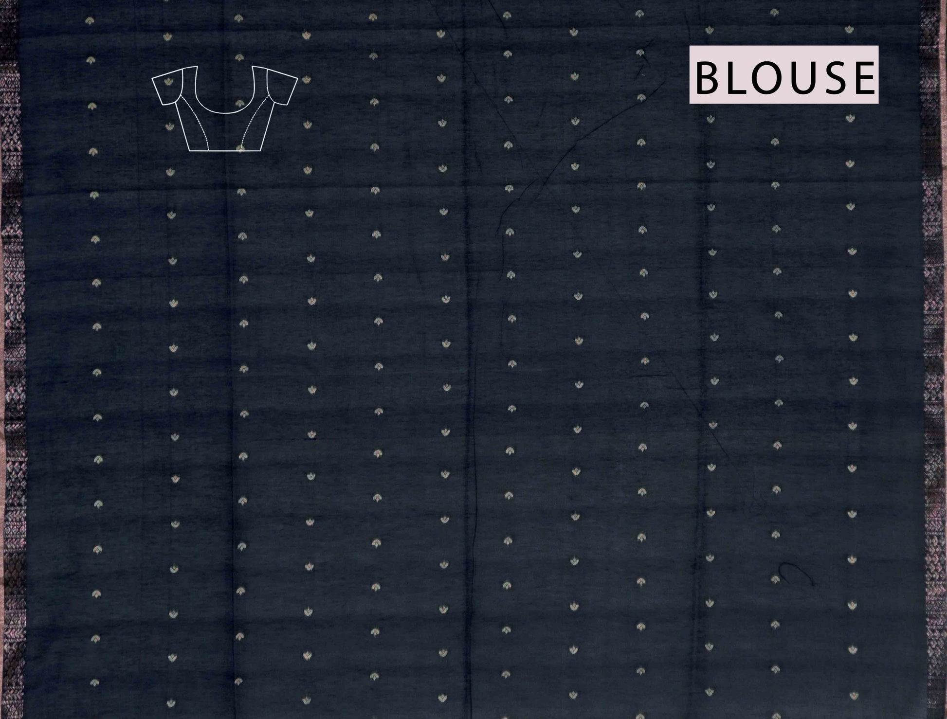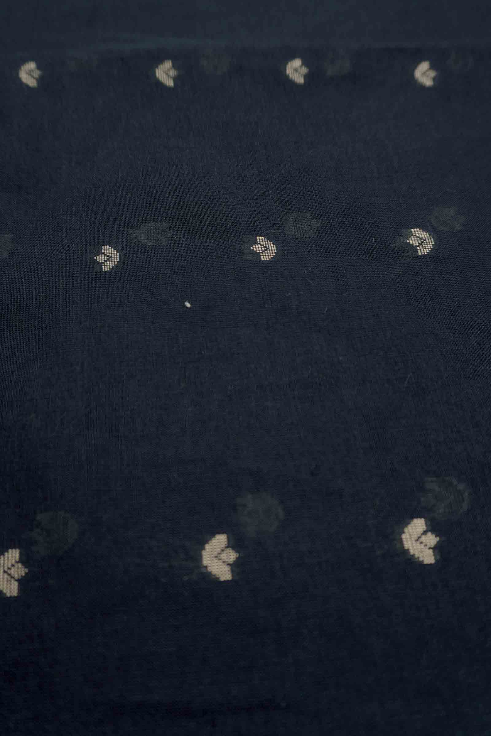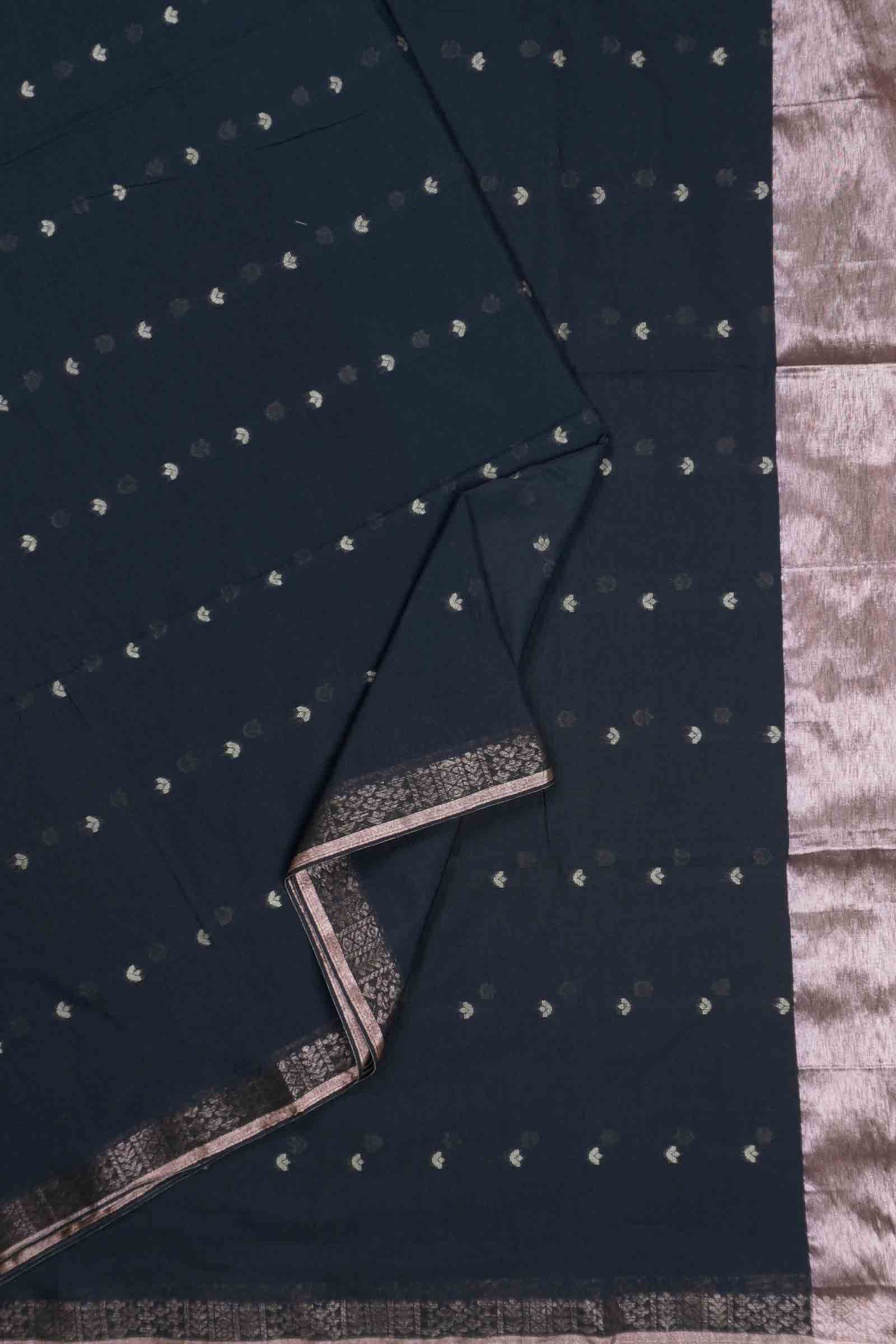 Black Soft Bengal Cotton Mini Leaf Butta Block Zari Pallu Saree