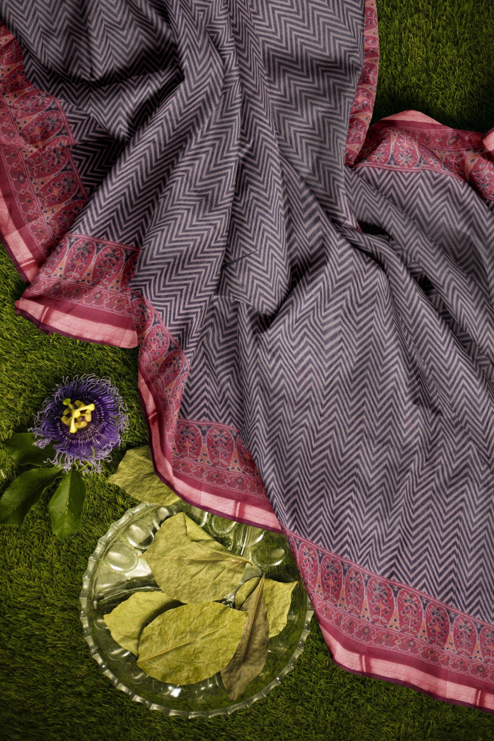 Black Fancy Zig Zag Printed Cotton Ajrakh Style Pallu Saree