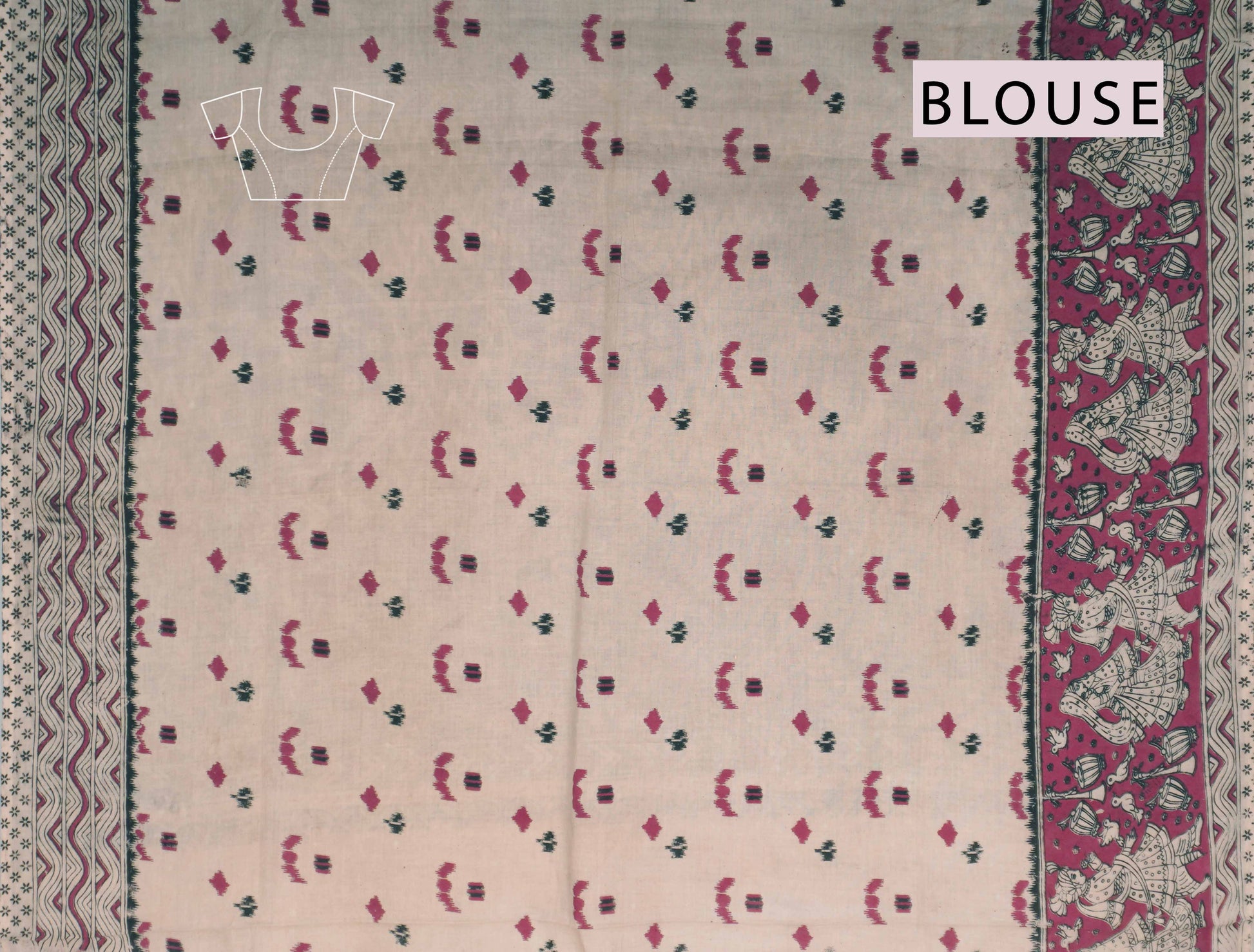 - Fabric: Pure Cotton Kalamkari Saree With Printed Blouse