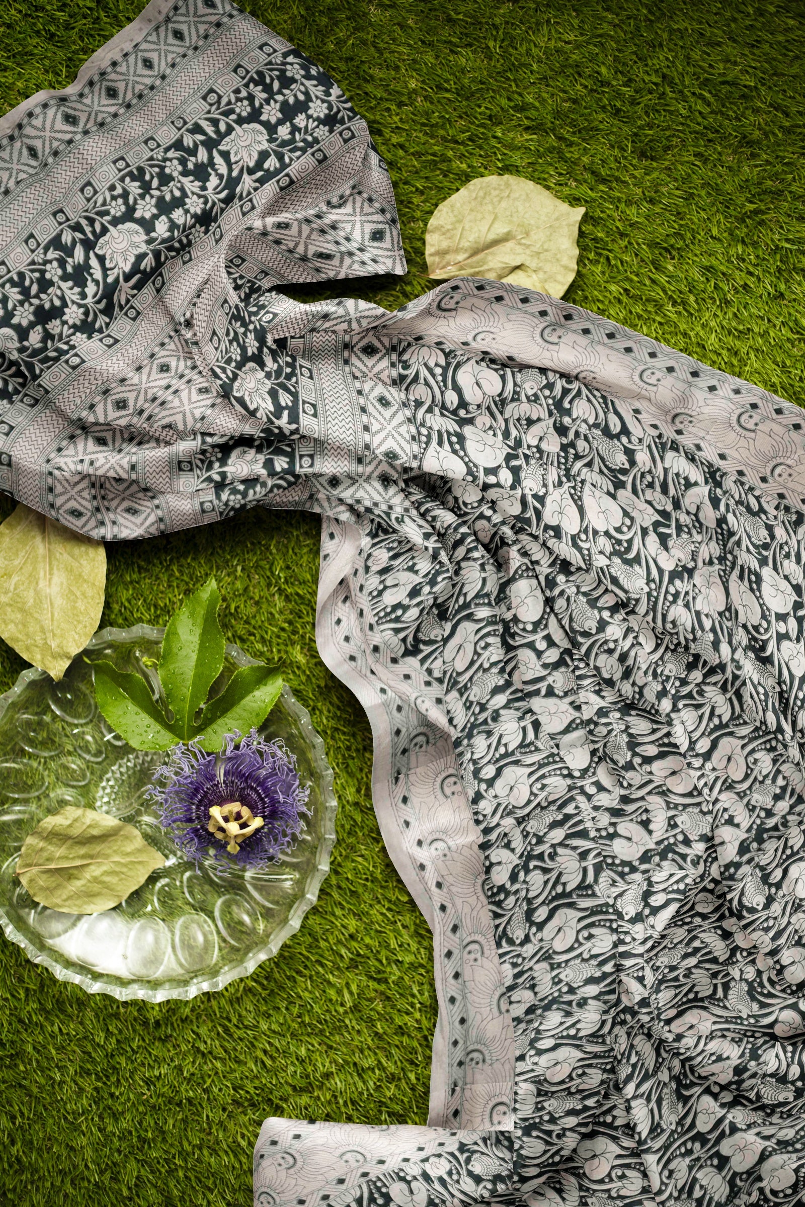 - Fabric: Pure Cotton Kalamkari Saree With Printed Blouse