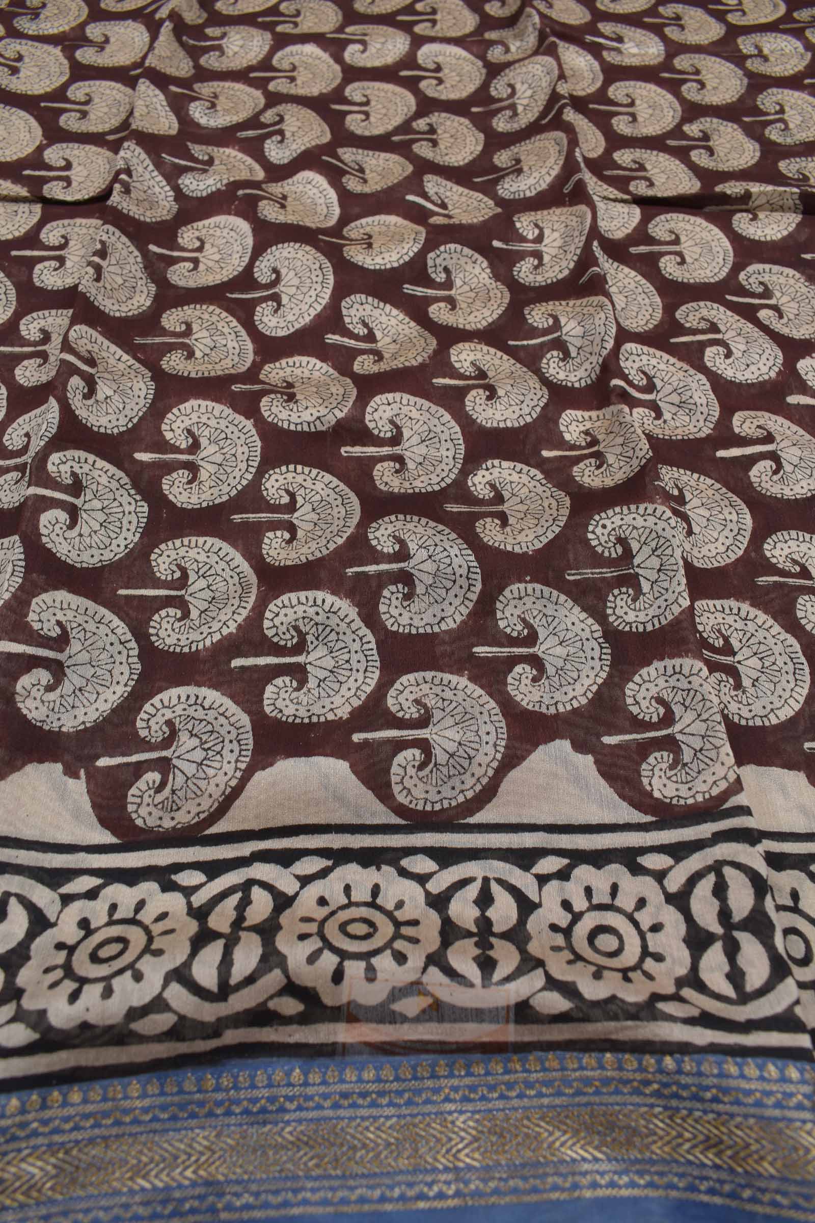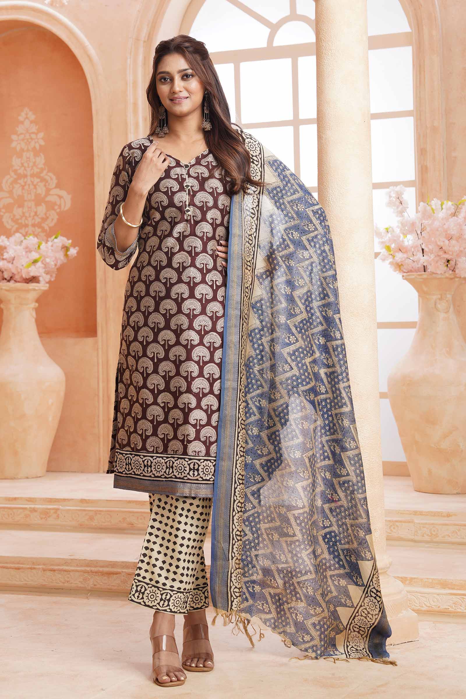 Brown Maheshwari Silk Chudithar Material Forest Floral Print Suit