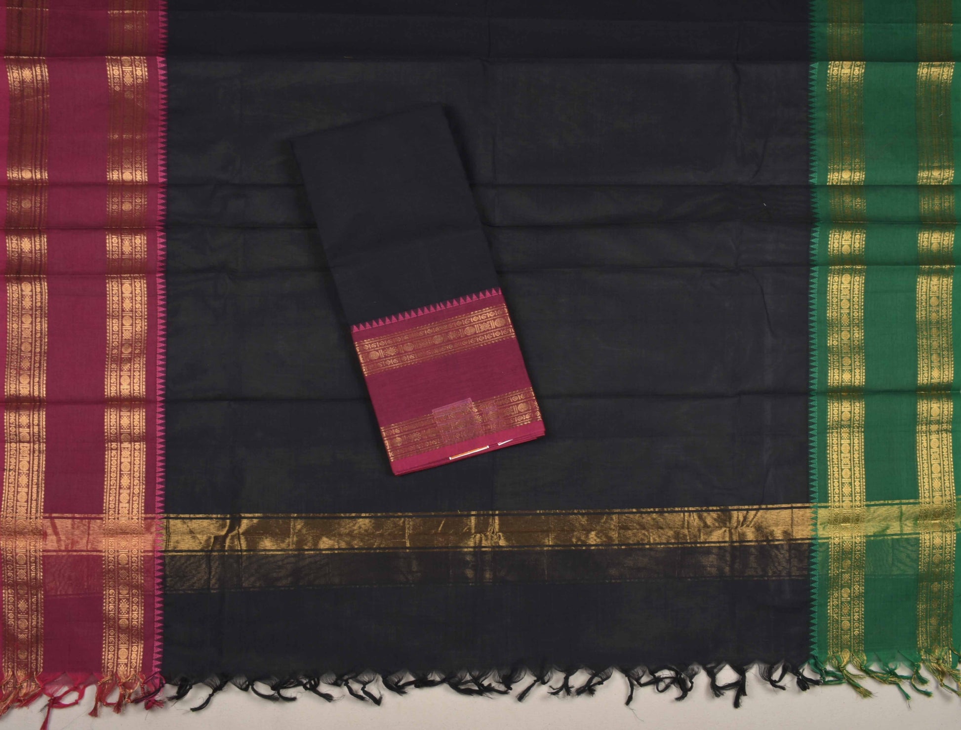 Black Pure Chettinad Cotton Chudithar Material Rettai Pet Zari Border Suit