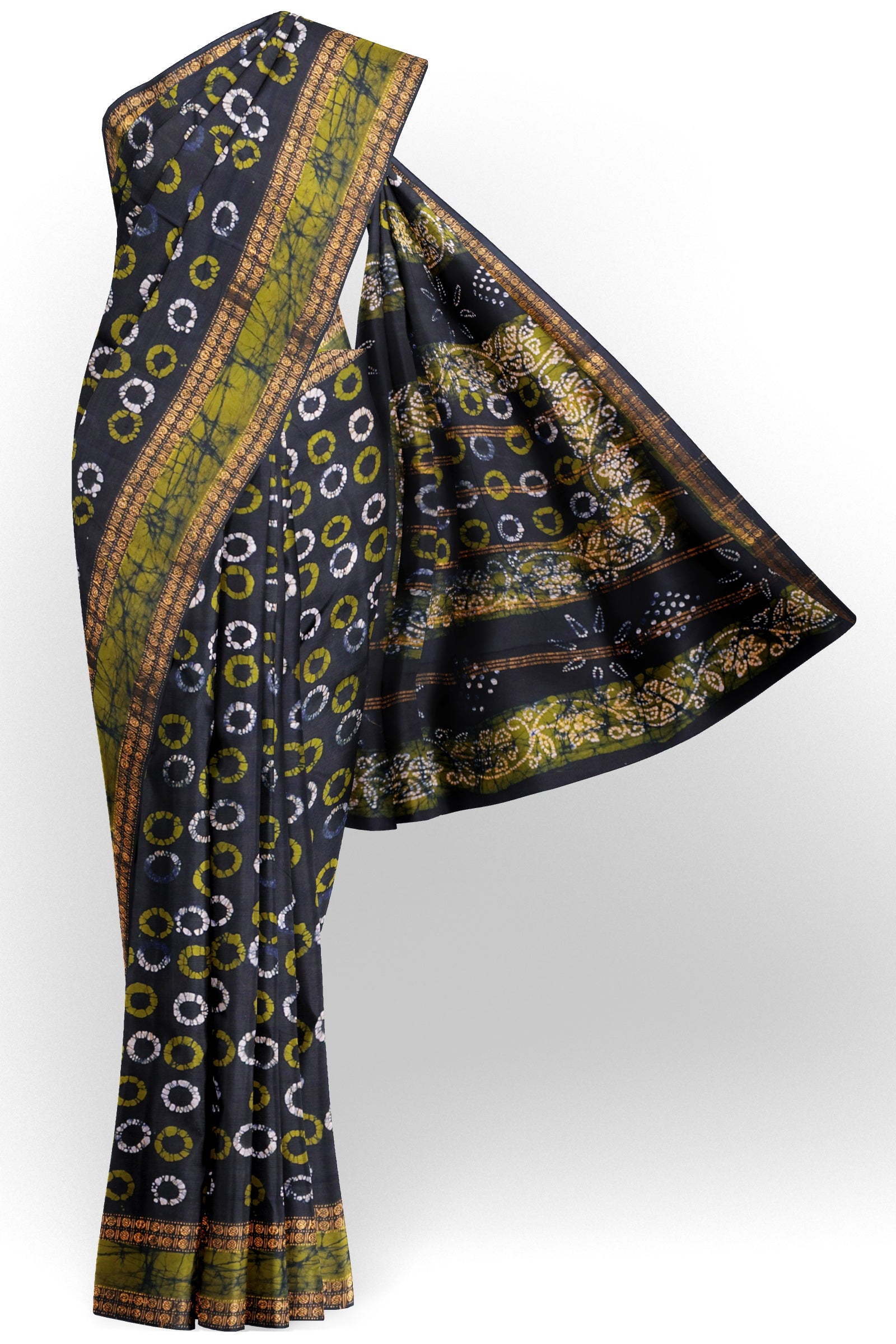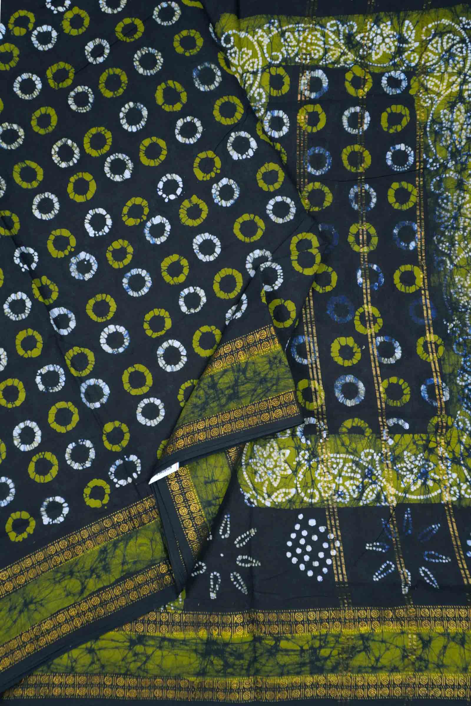 Black Pure Sungudi Cotton Cosmic Dots Double Pet Border Star Pallu Saree