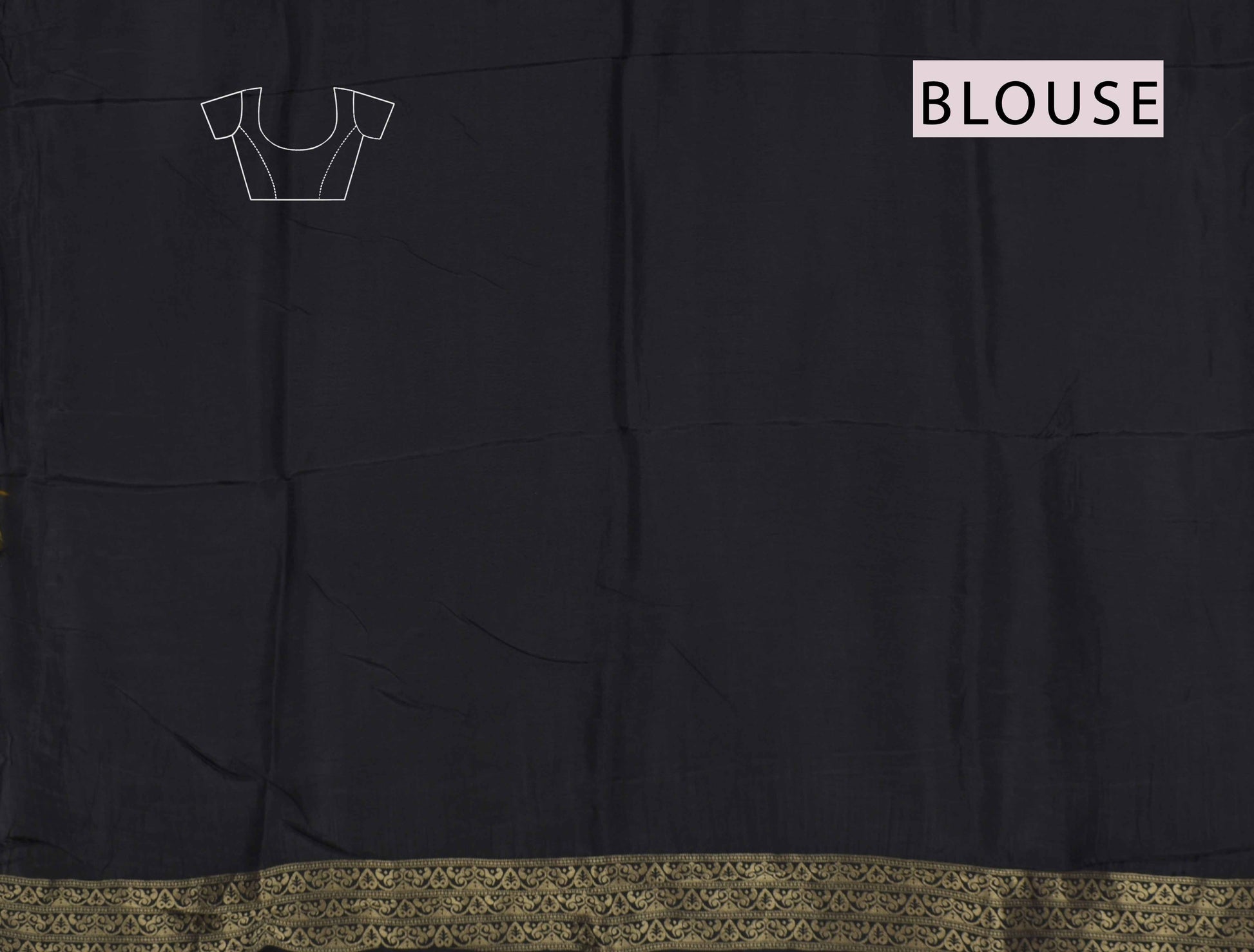 Black With Green Viscose Dola Zari Stripes Paisley Pallu Saree