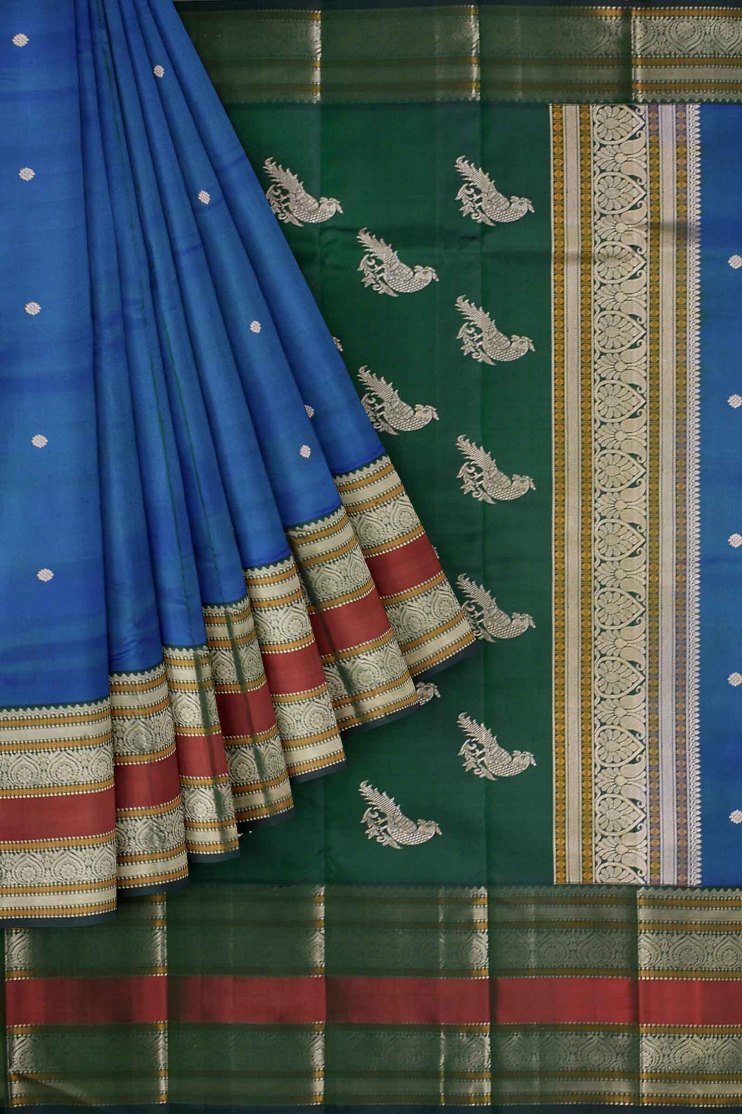 Blue Kanjivaram Pure Silk Big Border Contrast Parrot Pallu Saree