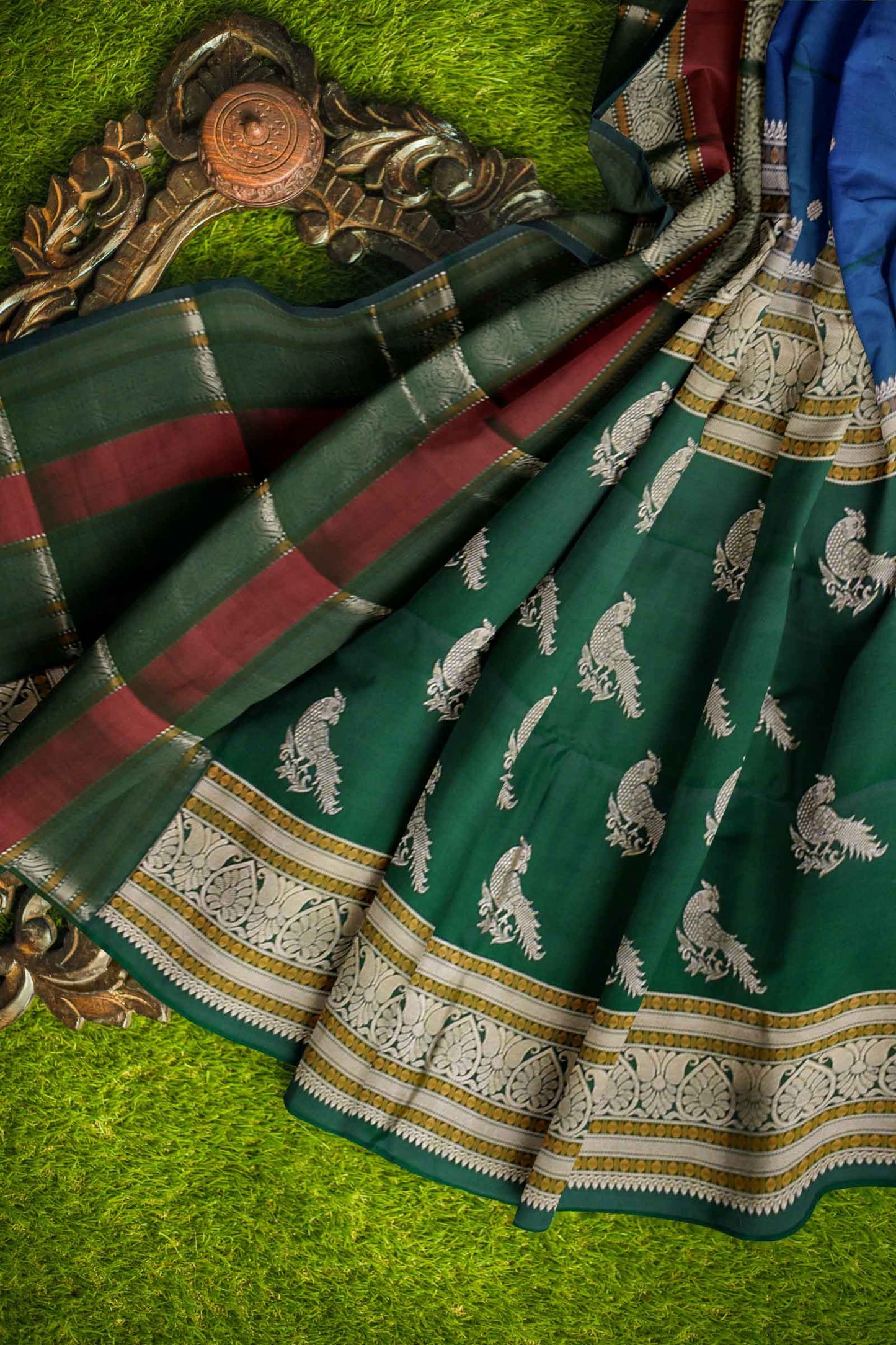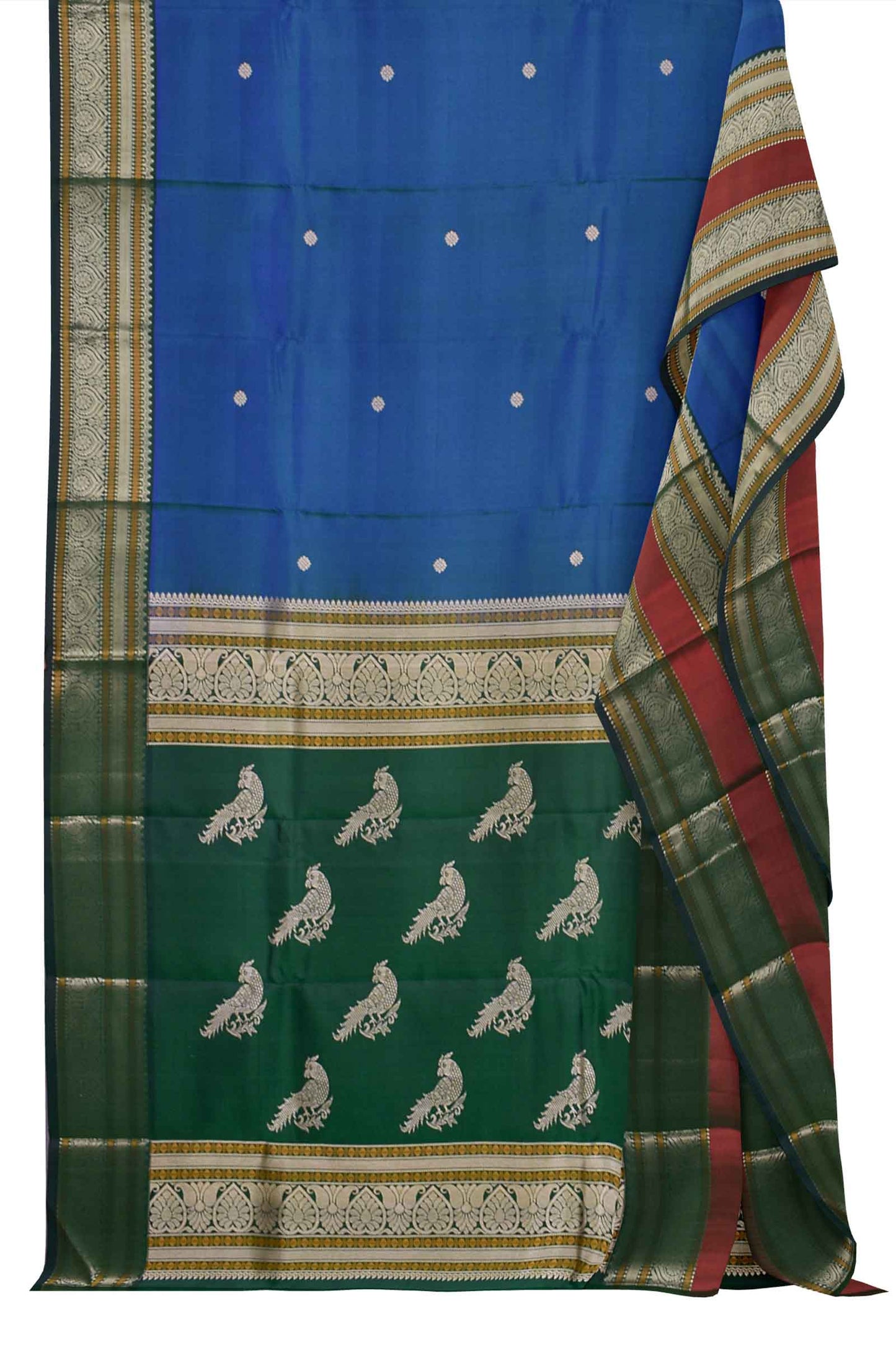 - Fabric: Kanchivaram Pure Silk Saree with Parrot Butta Pallu