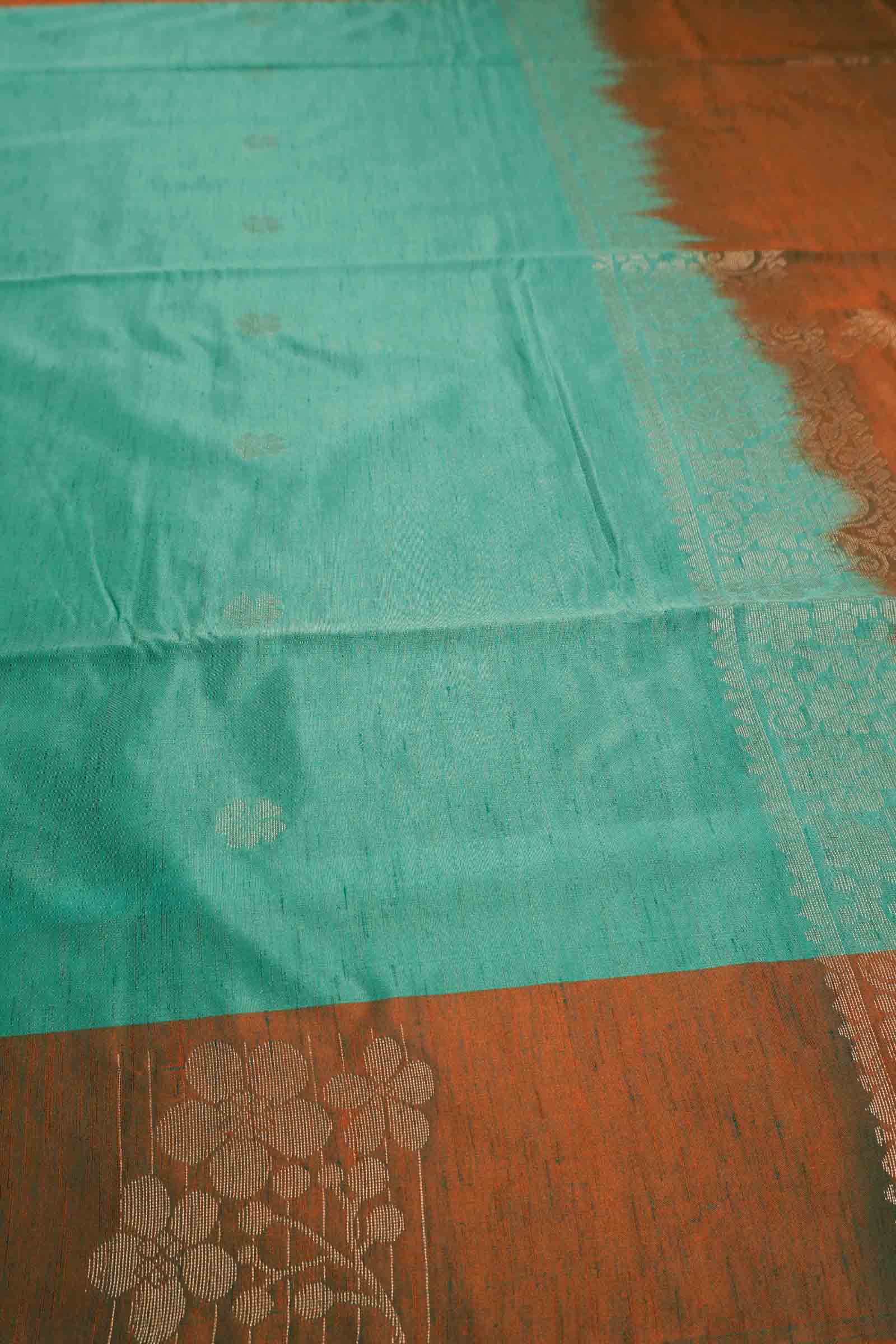 Peacock Green Mini Butta Zari Flowers Border Pallu Jute Semi Soft Silk Saree NAA247