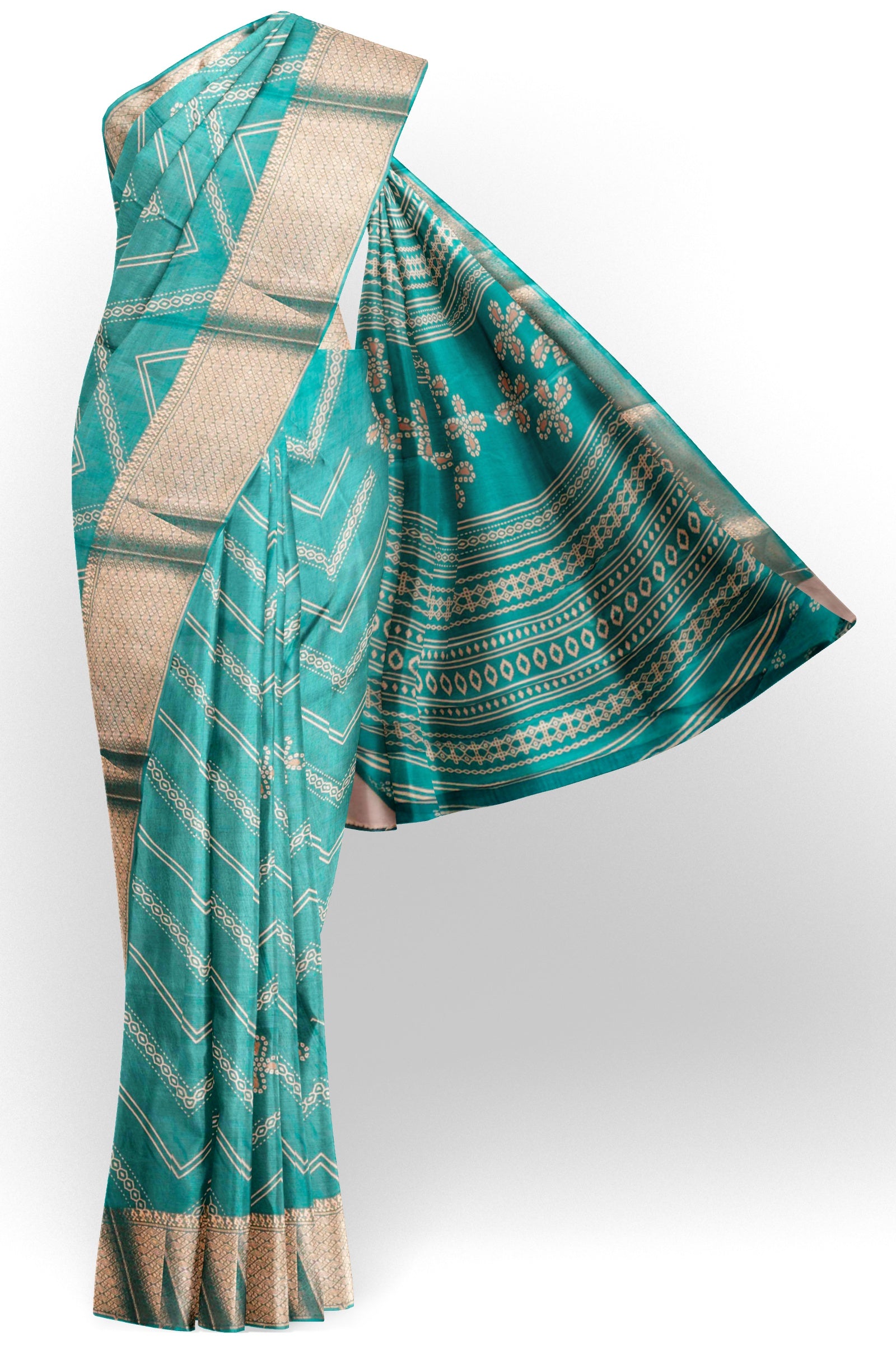 Blue Semi Dola Fancy Stripes Print Zari Border Saree