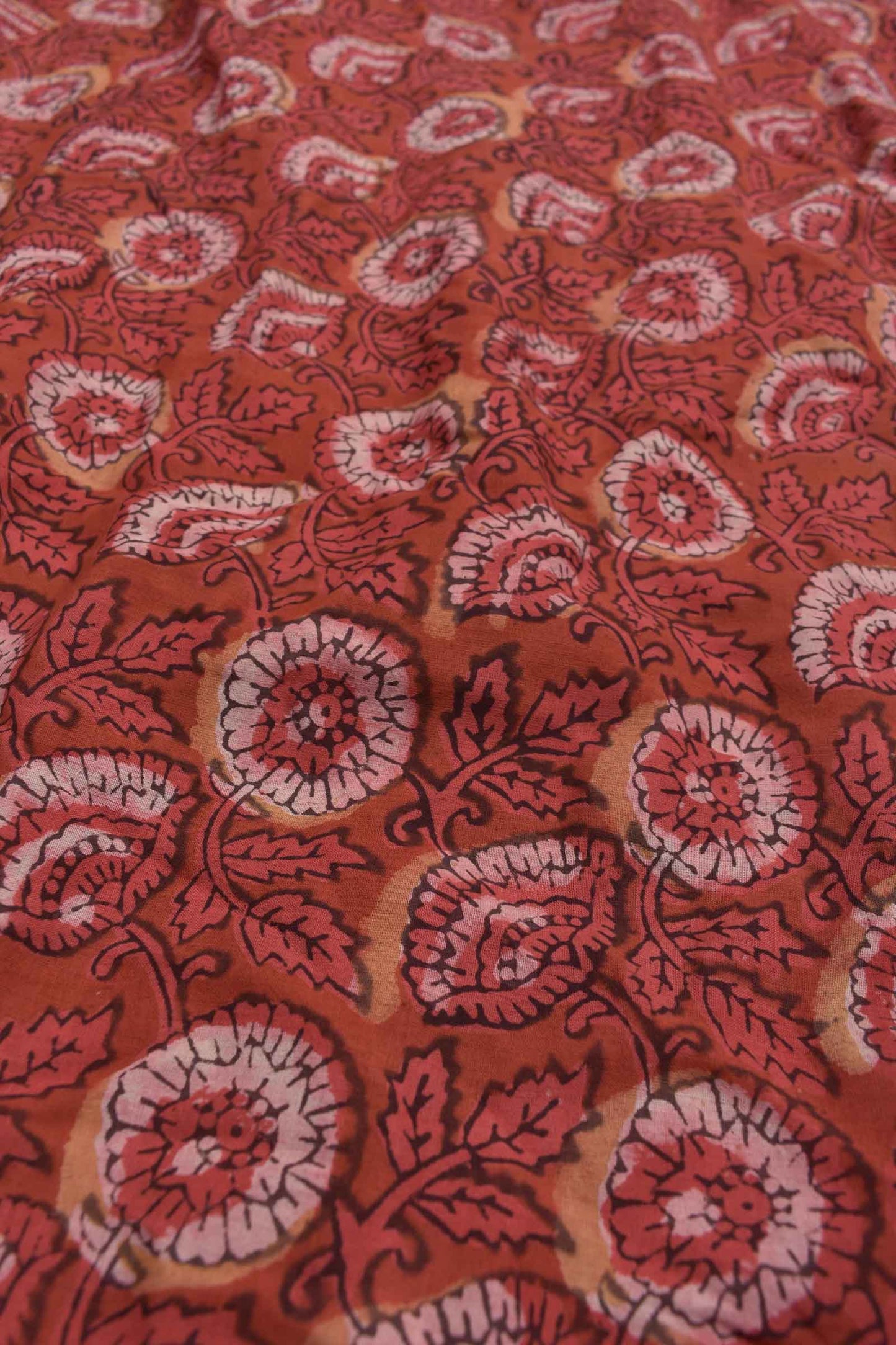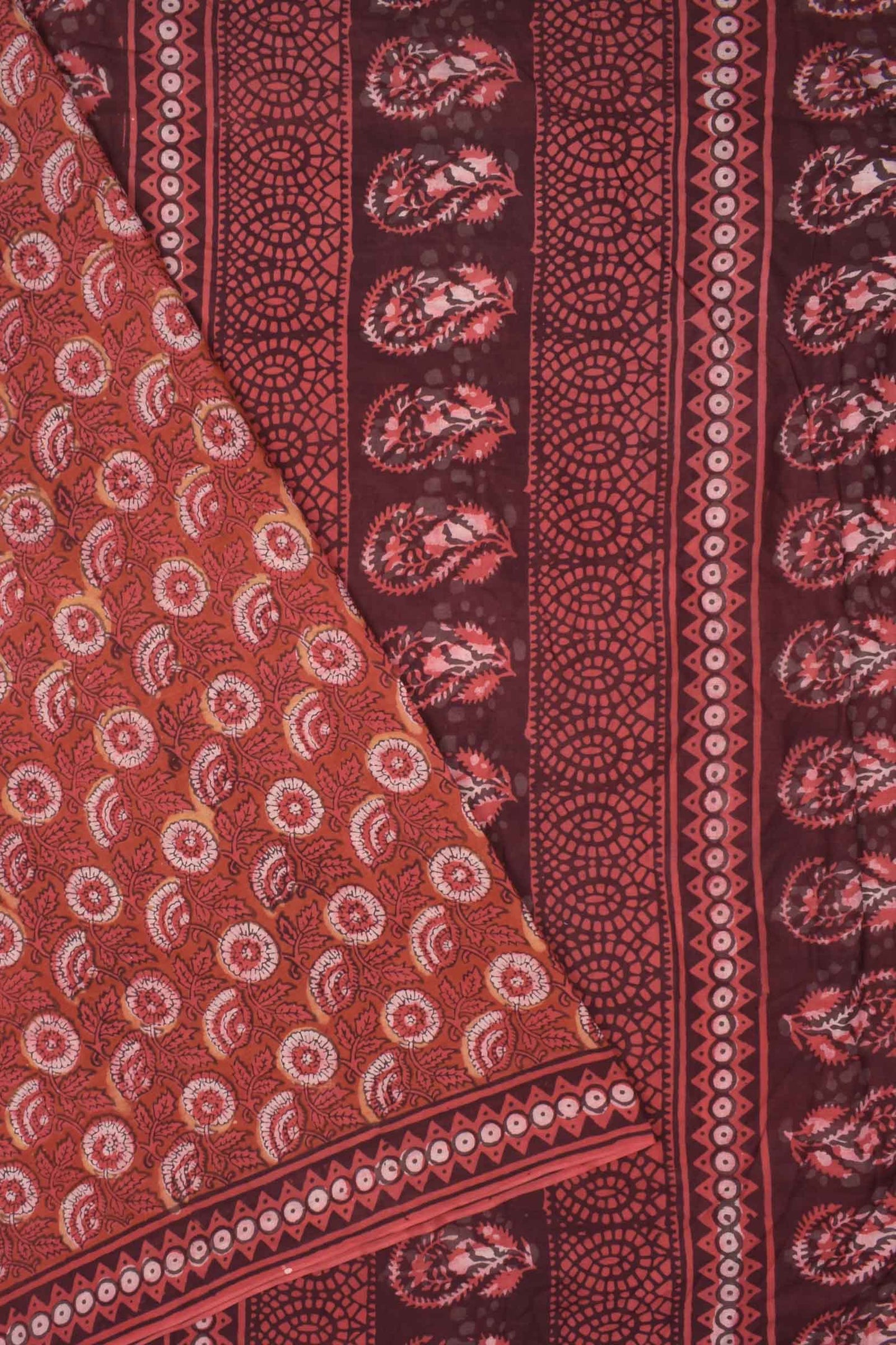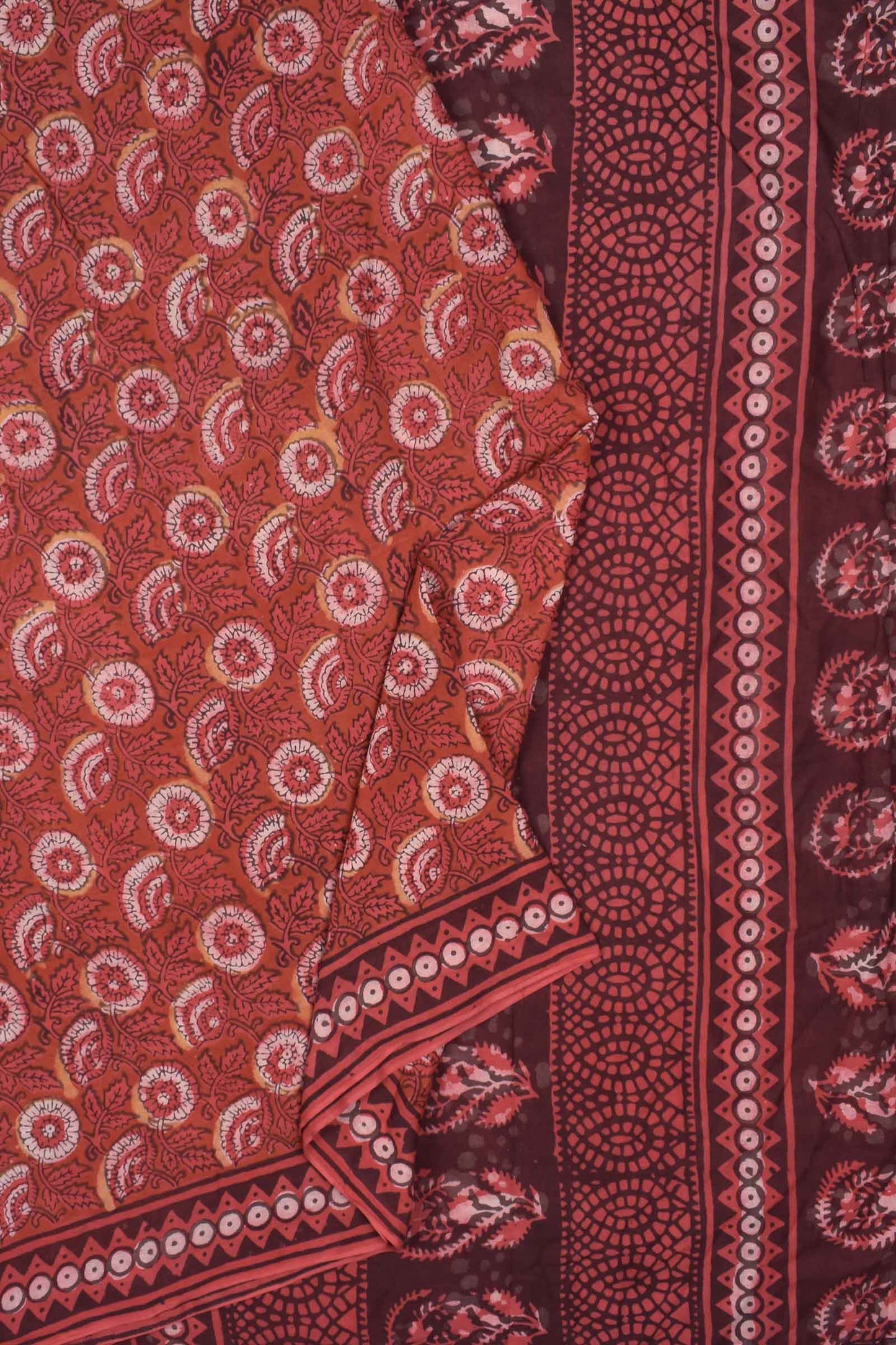 Red Pure Soft Cotton Vanaspatti Handblock Flower Print Saree