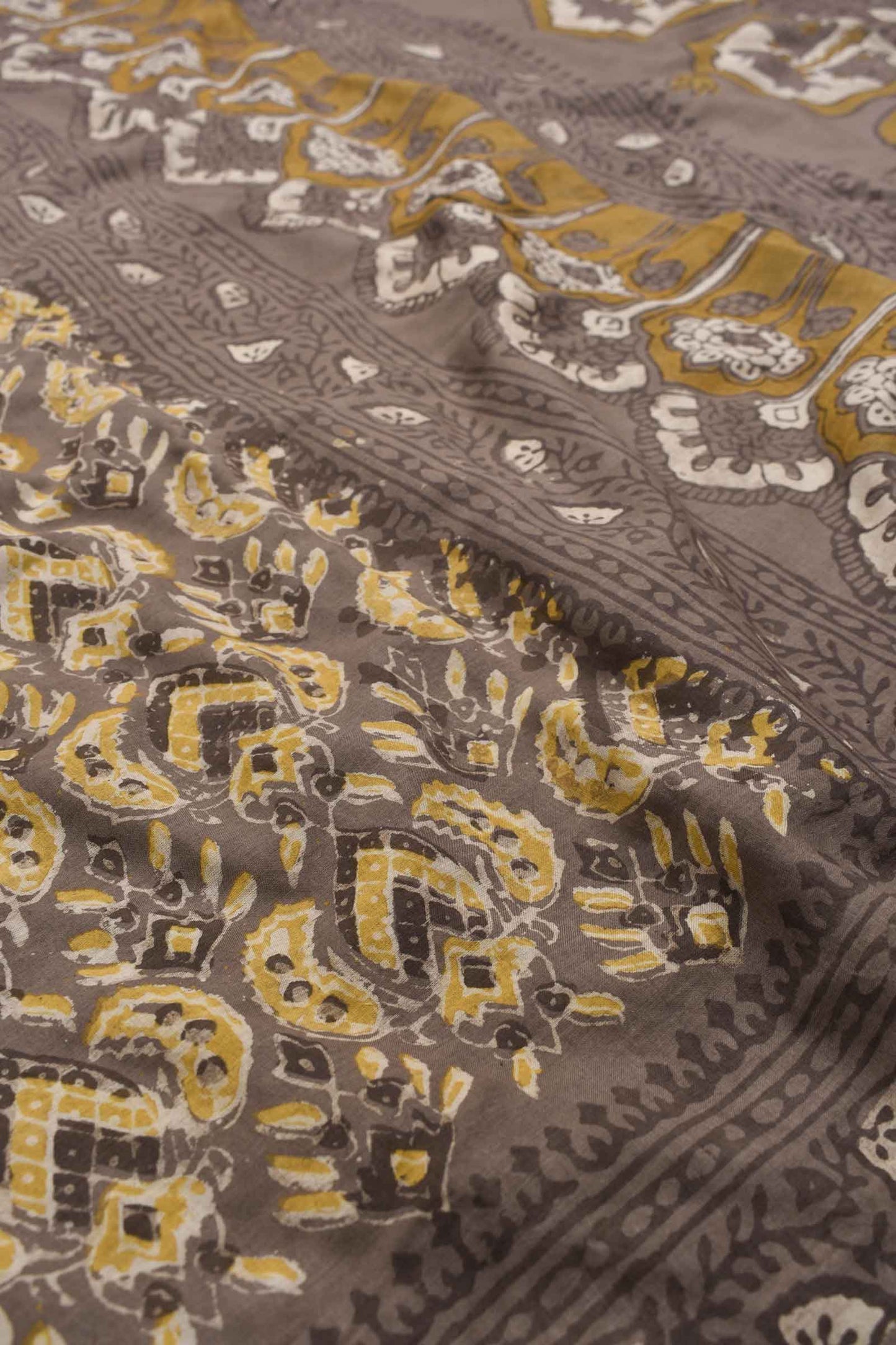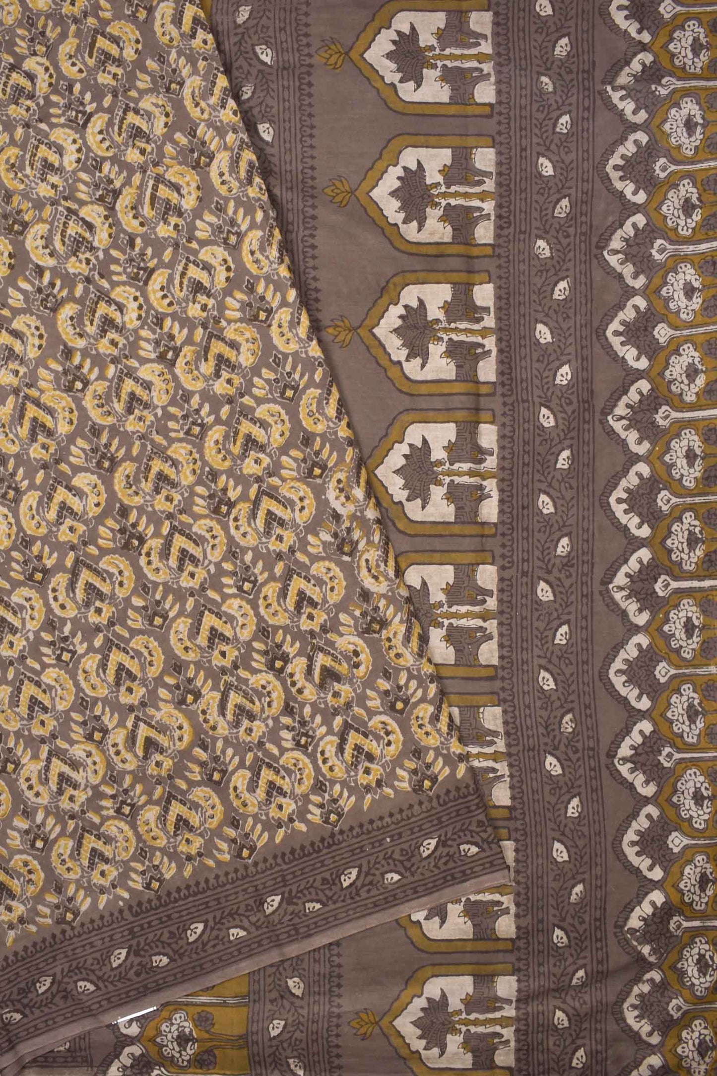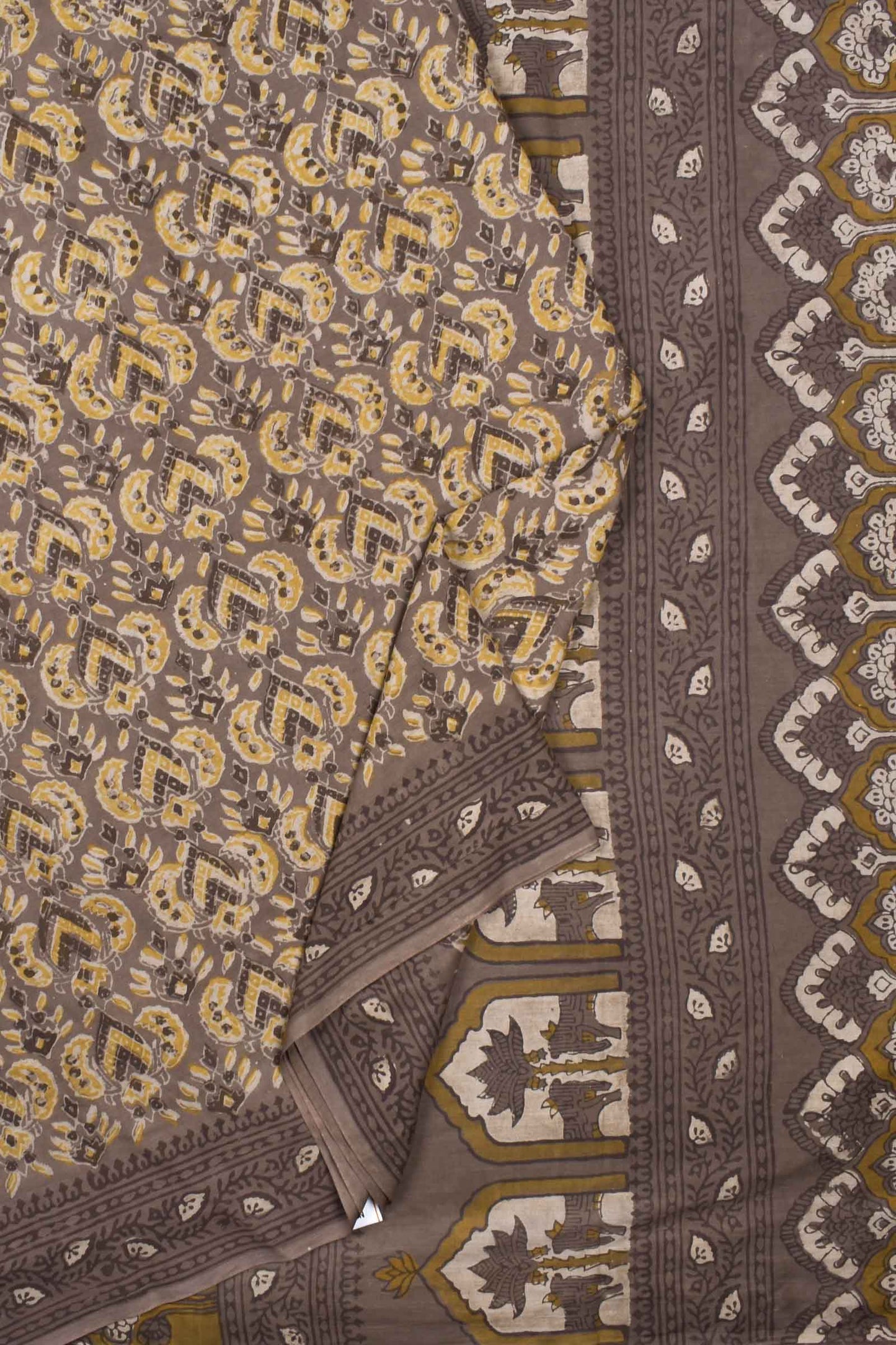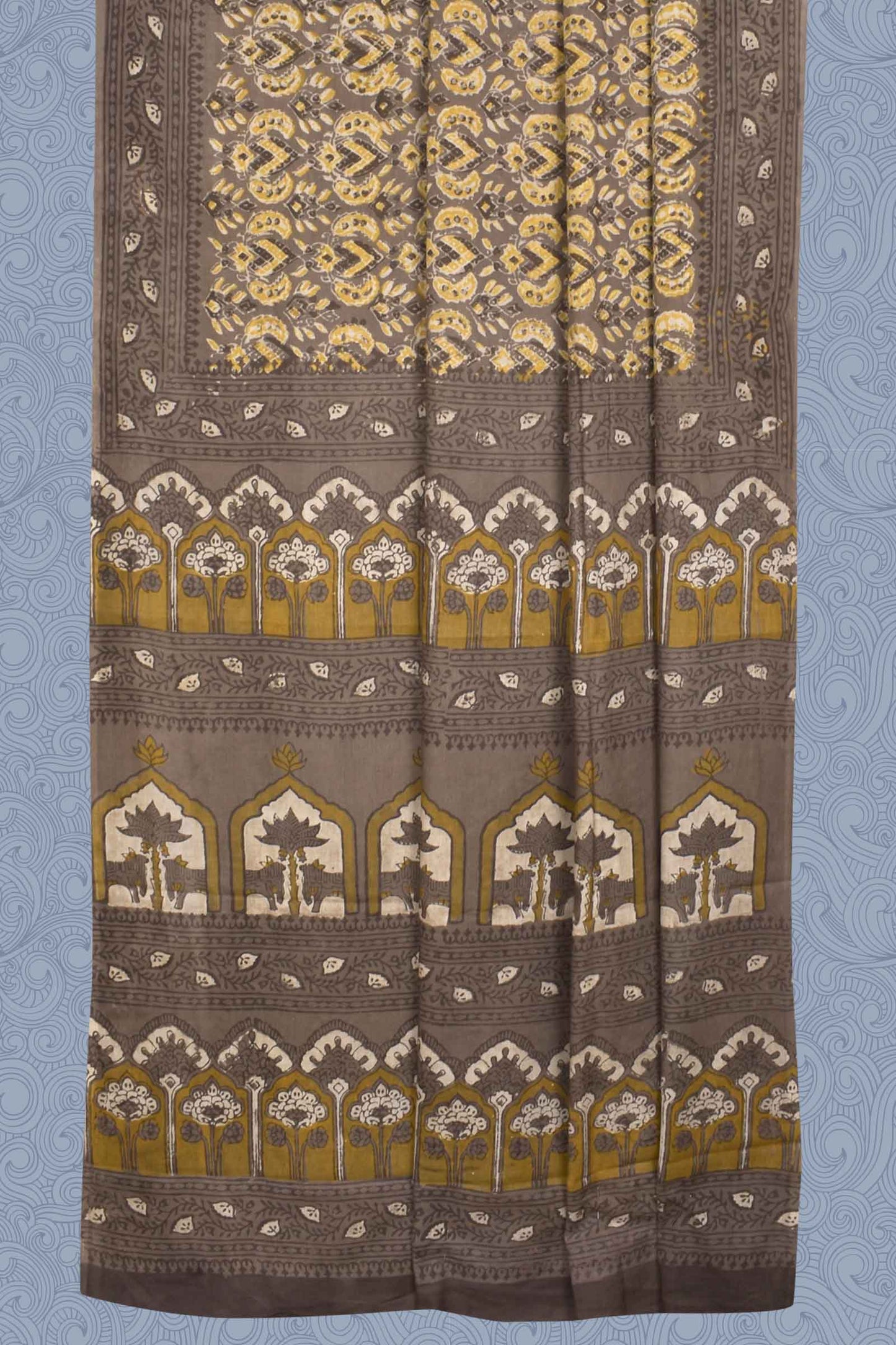 Brown Pure Soft Cotton Vanaspatti Handblock Pichwai Pallu Print Saree