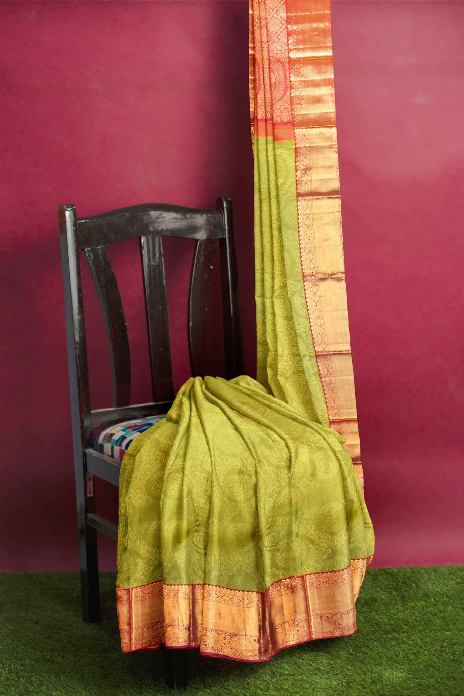 - Fabric: Kanchipuram Bridal Silk Saree with Contrast Pallu