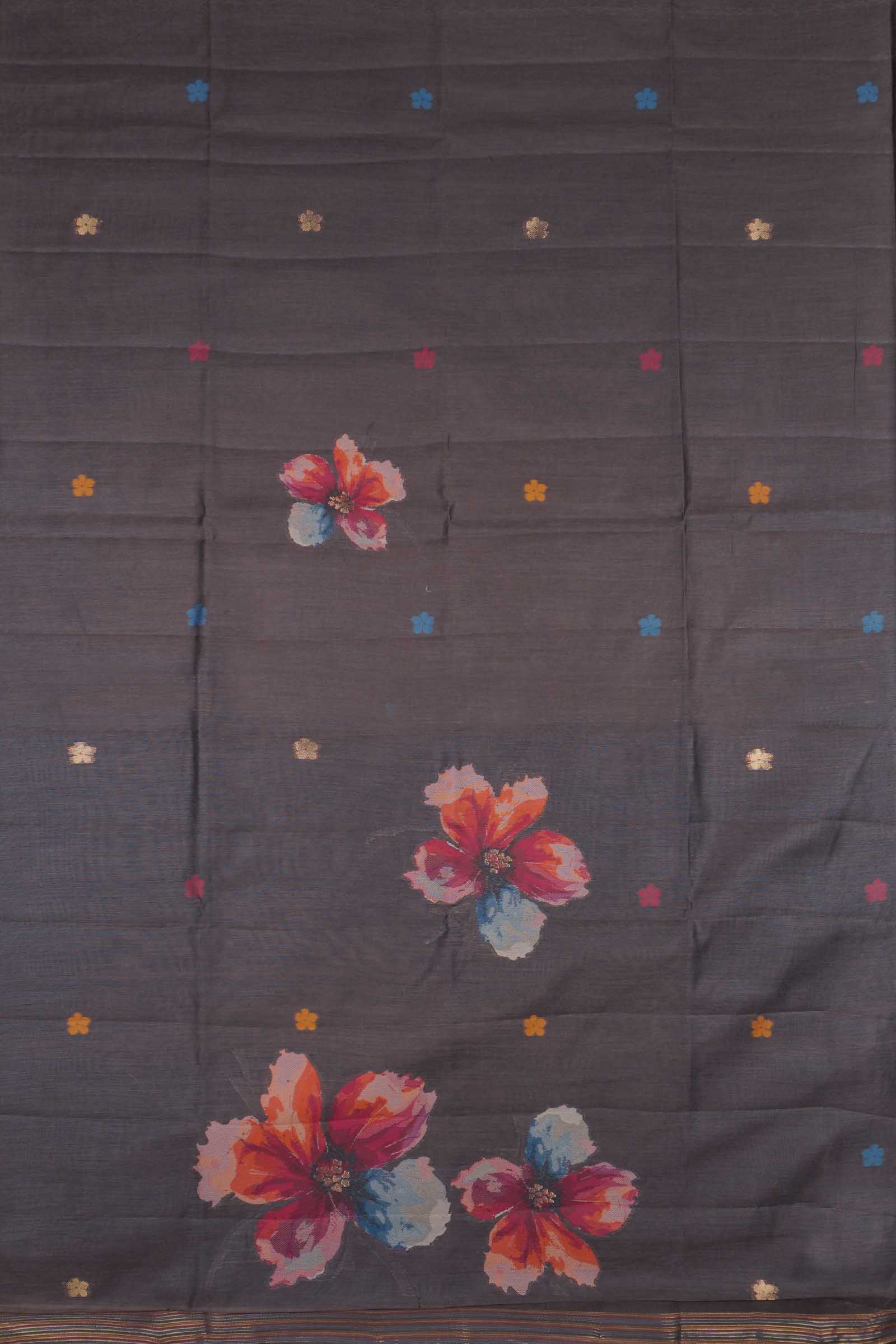 Deep Grey Pure Cotton Chudithar Material Floral Canvas Suit