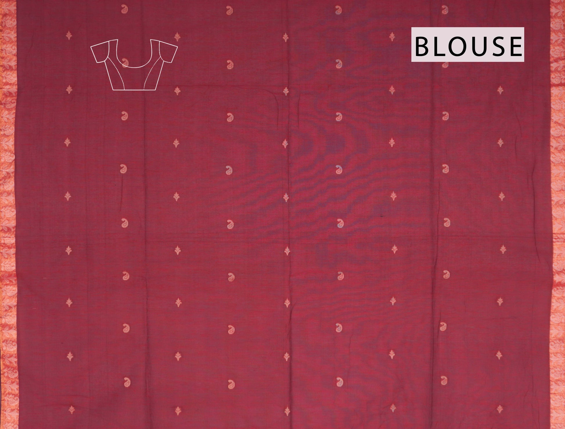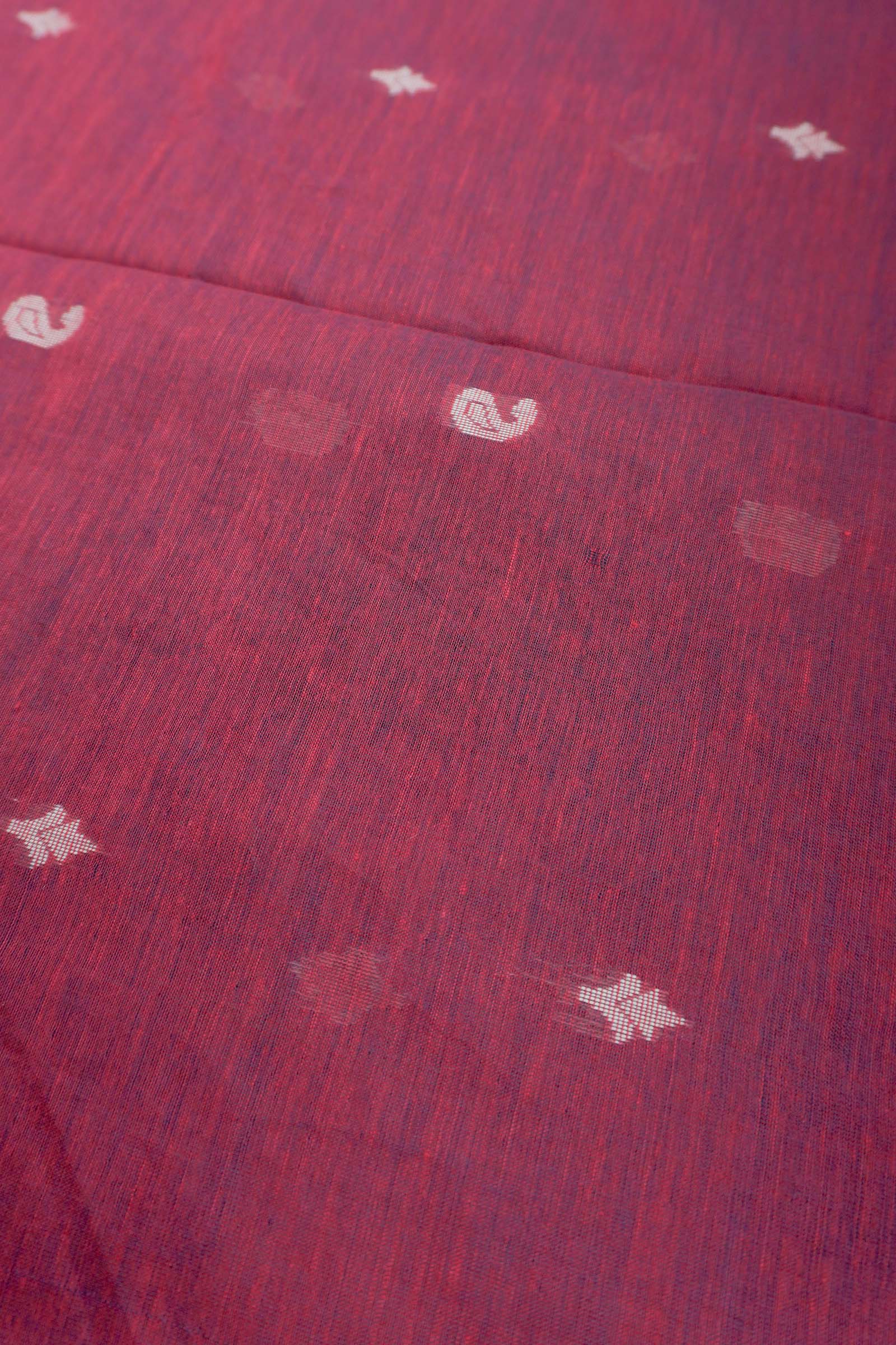 Dark Maroon Soft Bengal Cotton Mini Mango Leaf Butta Block Zari Pallu Saree