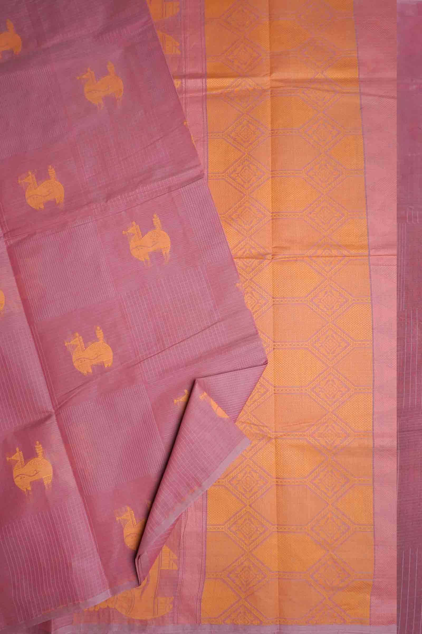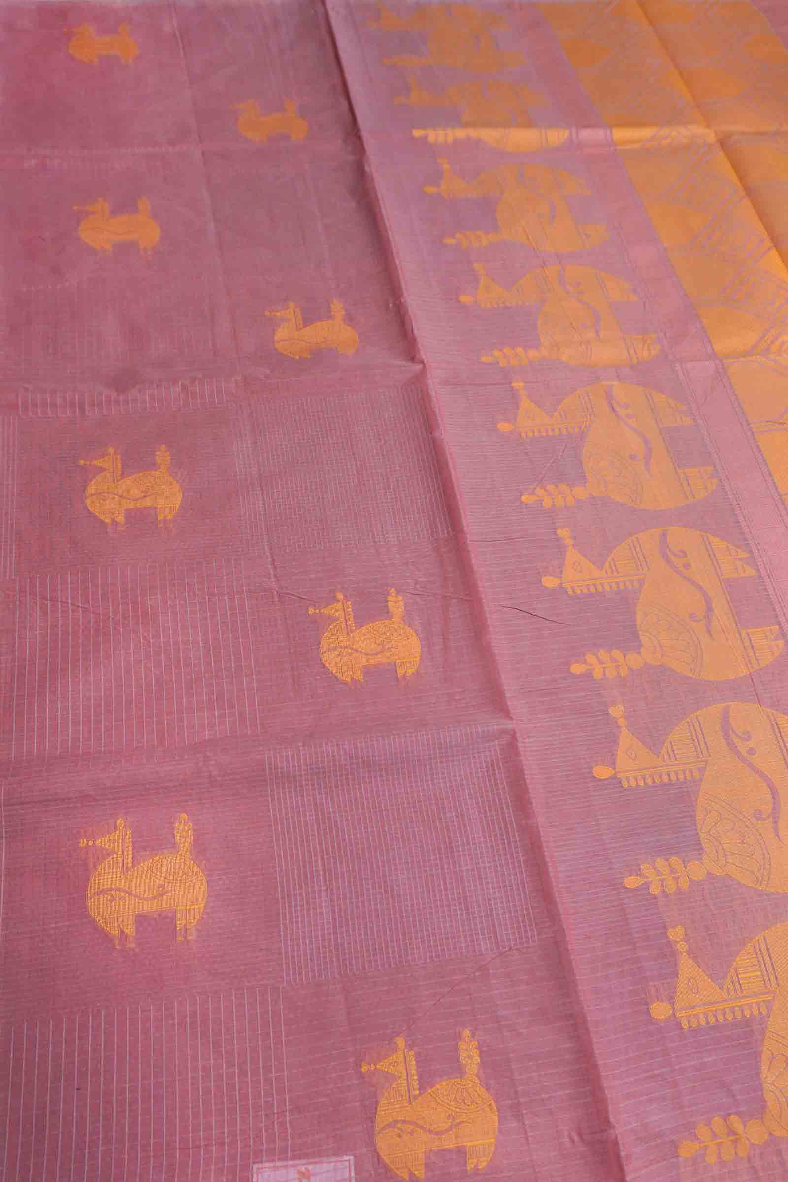 Dark Mauve Taupe Pure South Cotton Mini Checks Llama Butta Saree