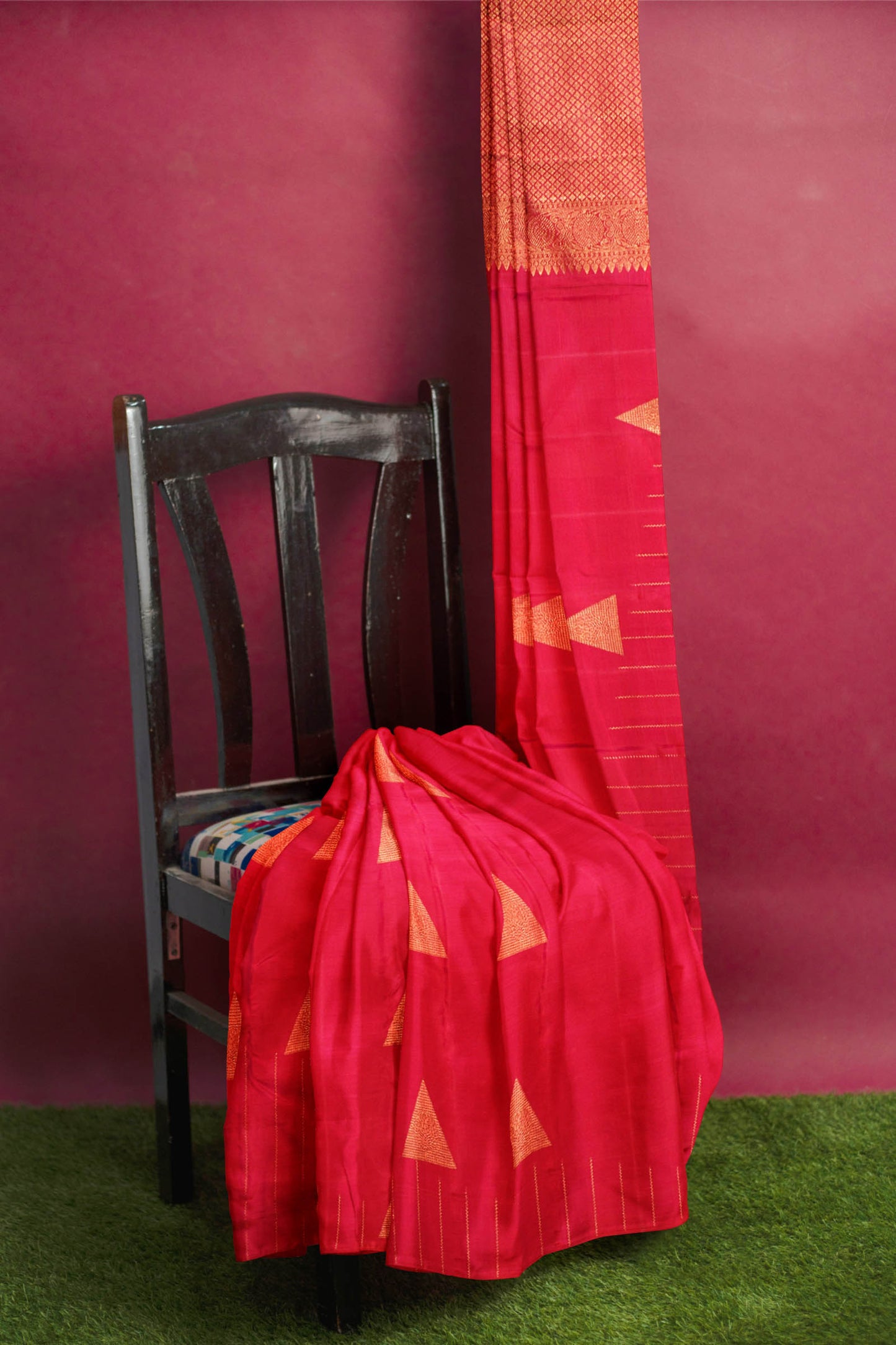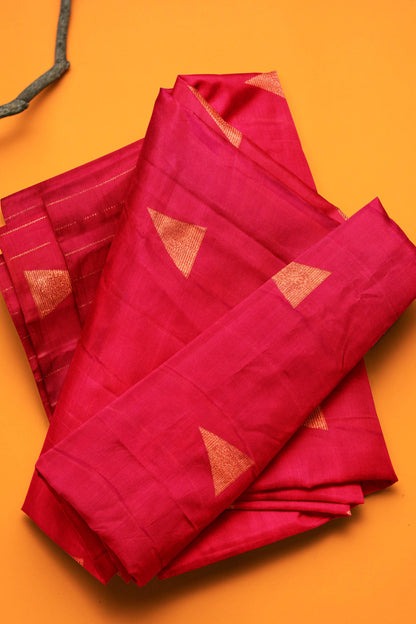 Dark Pink Light Weight Pure Silk Borderless Triangle Butta Saree