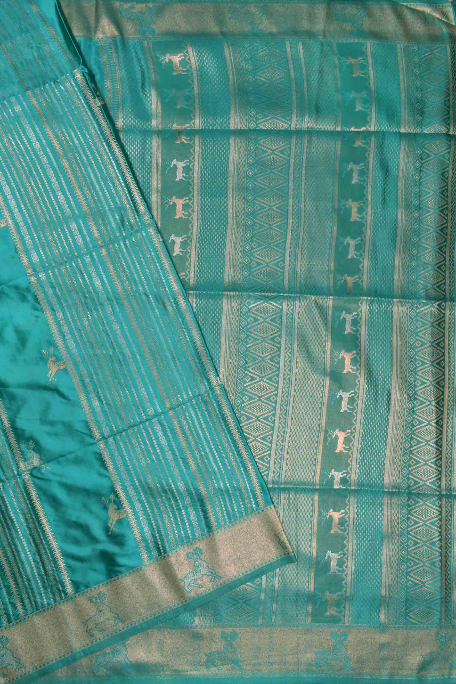 Dark Turquoise Blue Pure Dola Heer Butta Zari Border Saree