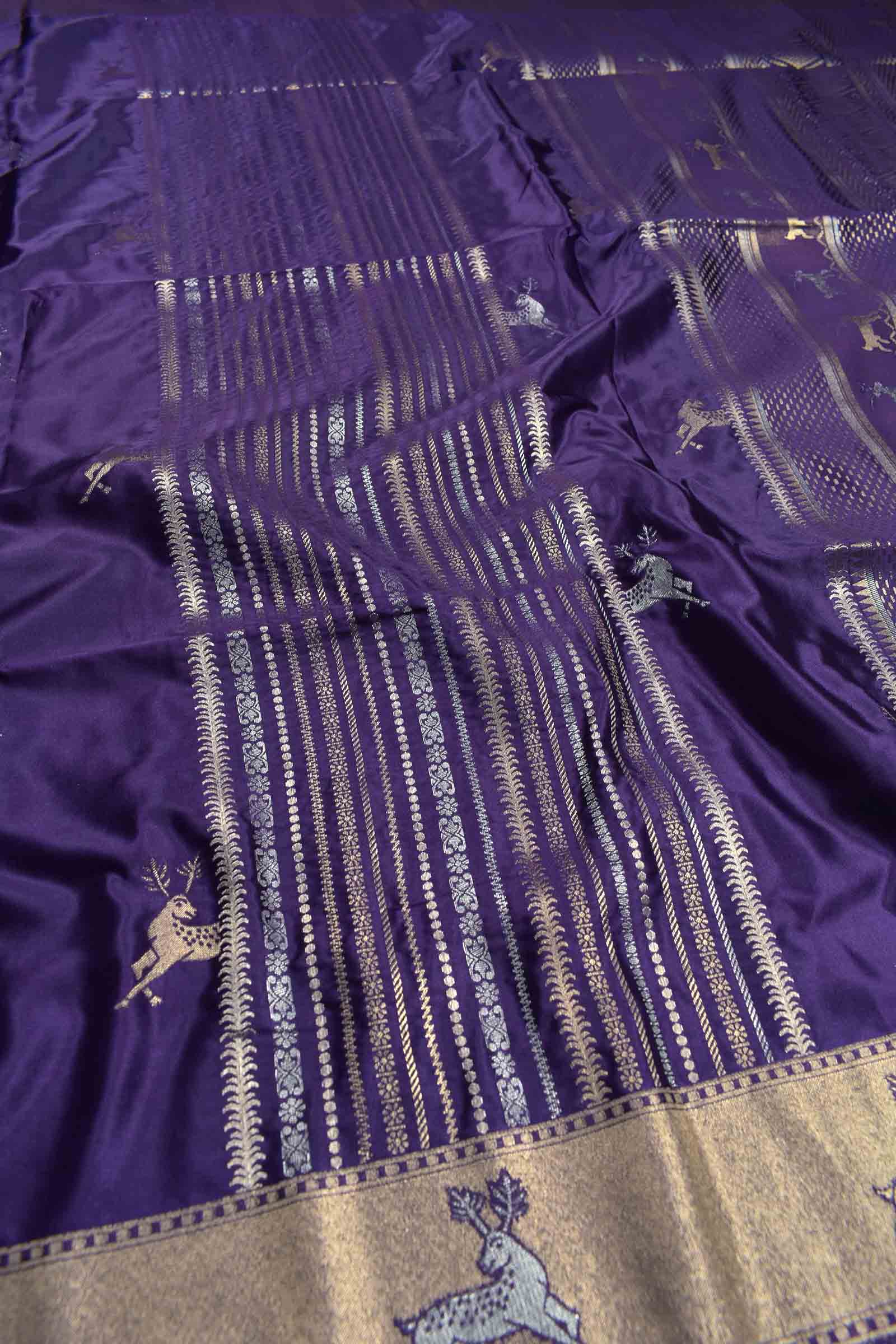 Dark Violet Pure Dola Fancy Heer Butta Zari Border Saree