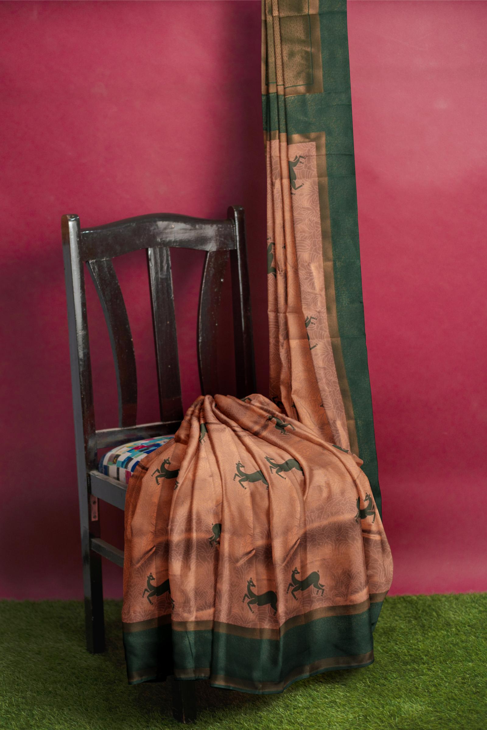 Golden Fancy Semi Silk Deer Design Contrast Pallu Saree