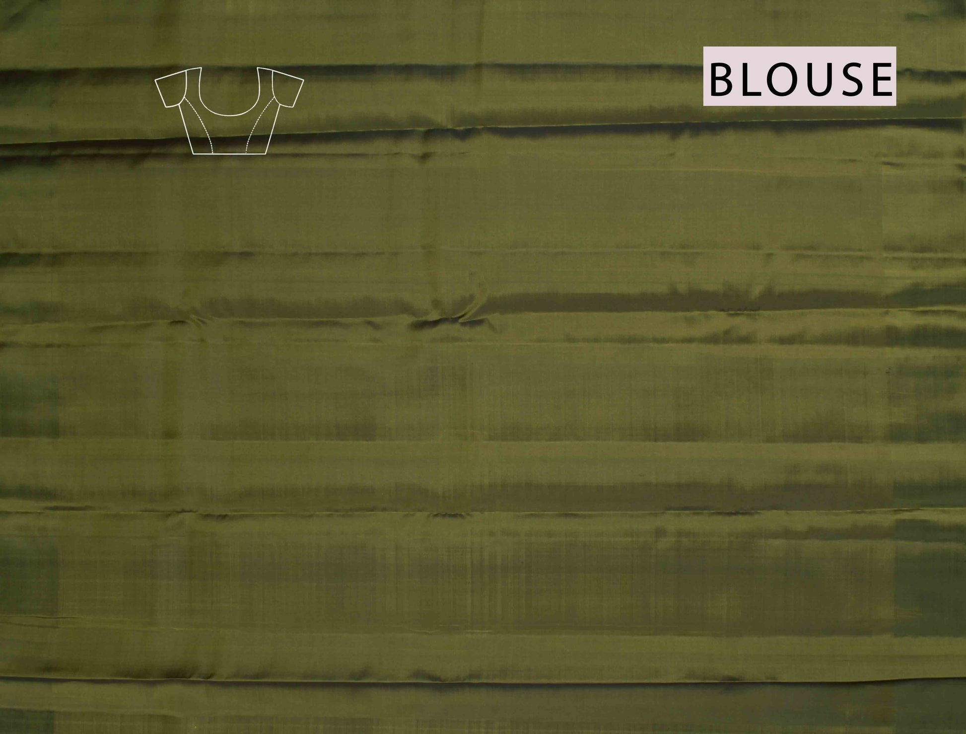 Dark Orange Body Fancy Butta Dark Olive Green Border Pallu Semi Soft Silk Saree