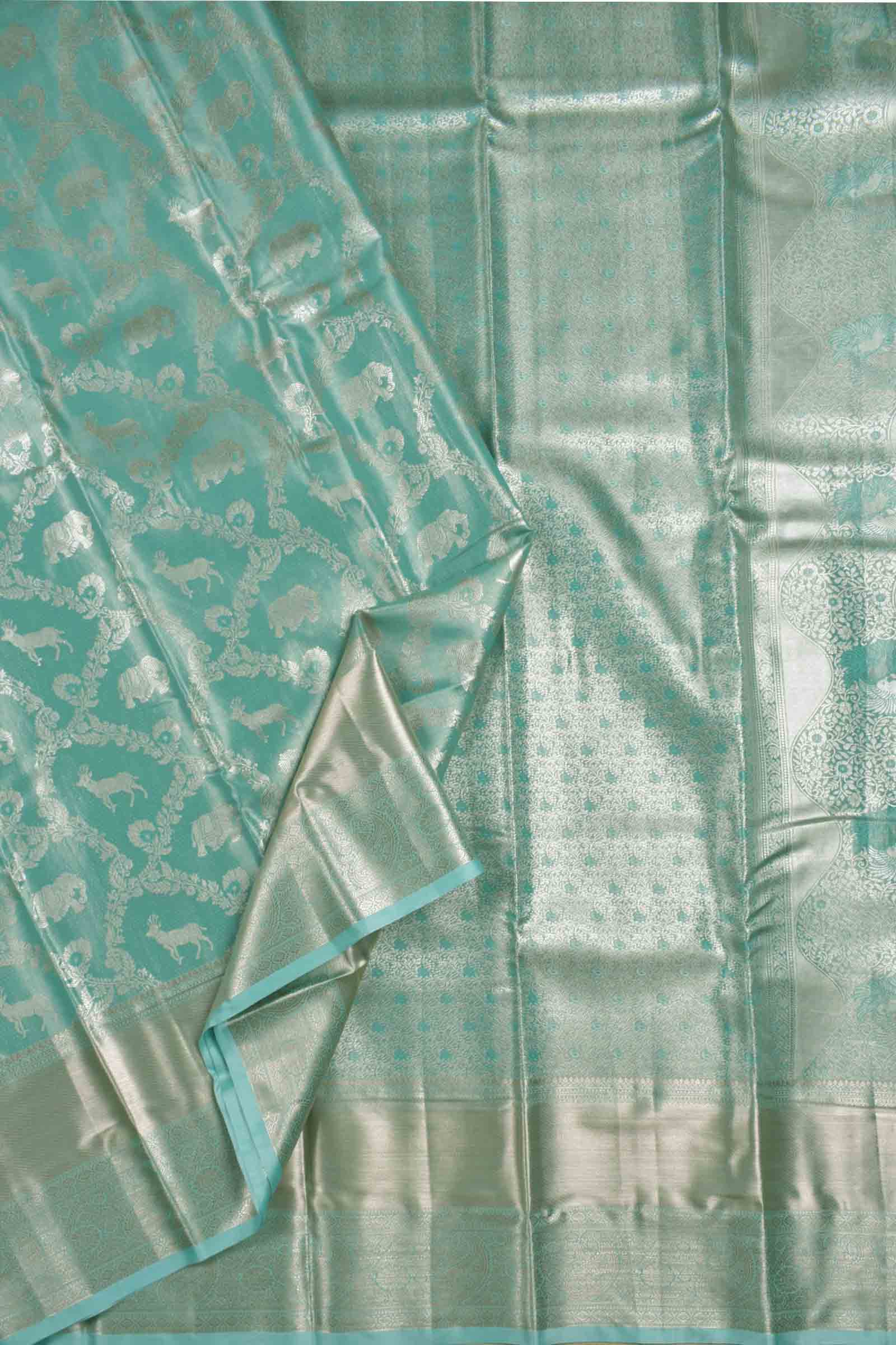 Golden Light Green Semi Silk Heer Jaal Zari Border Pallu Saree