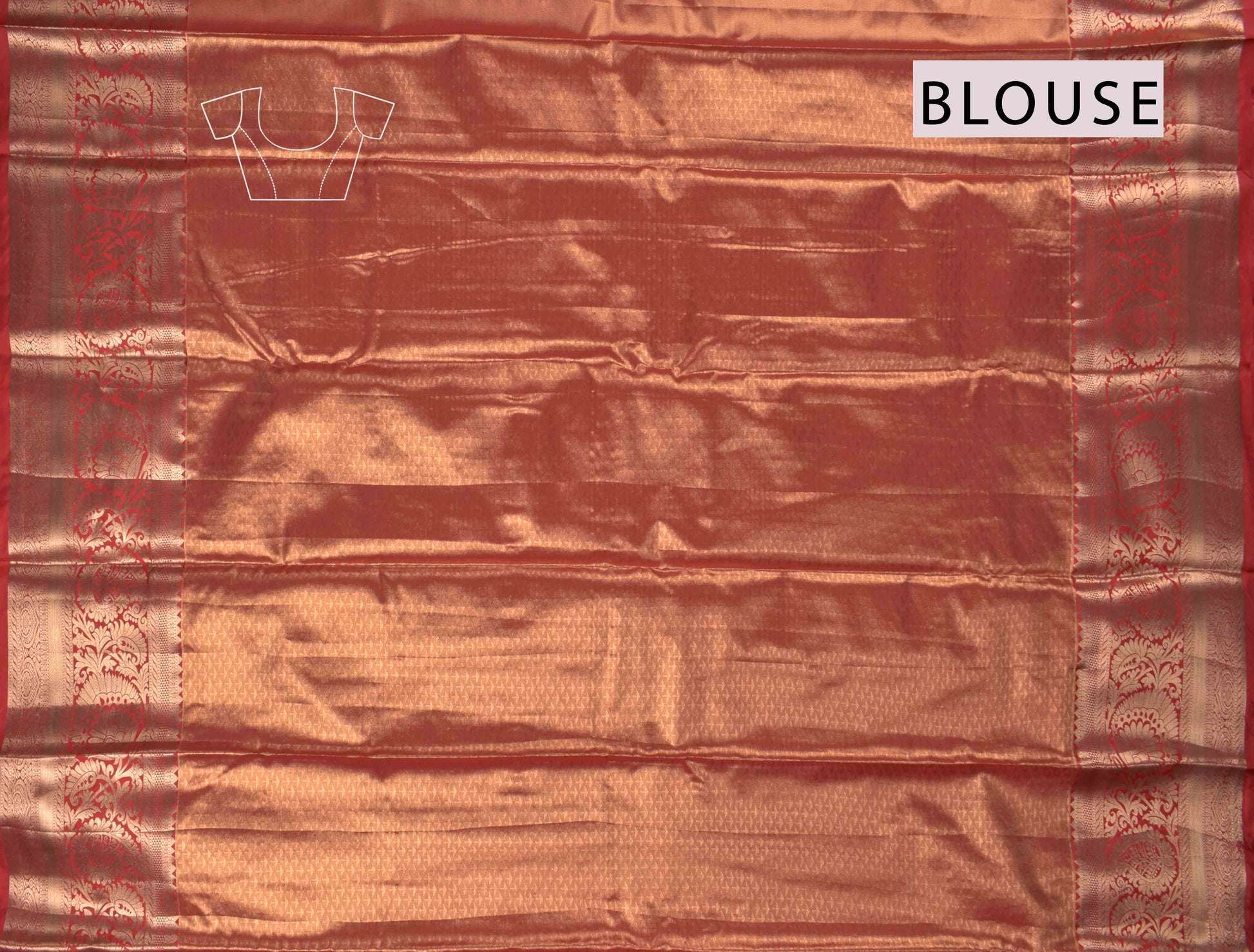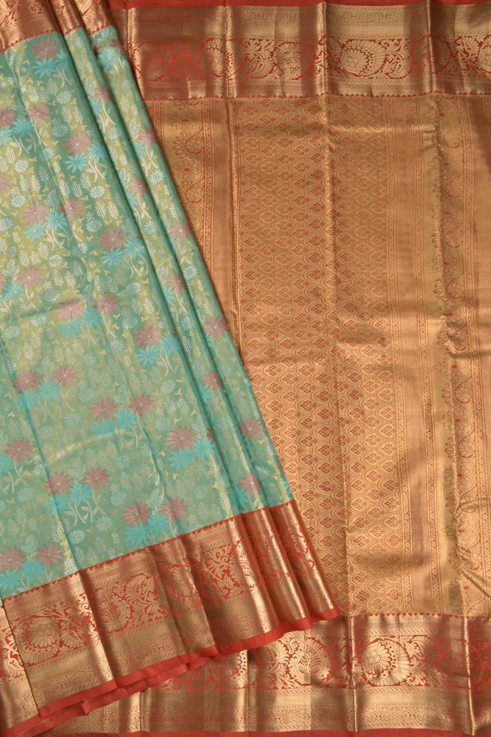 Golden Light Green Semi Silk Meena Florals Golden Red Zari Border Pallu Saree