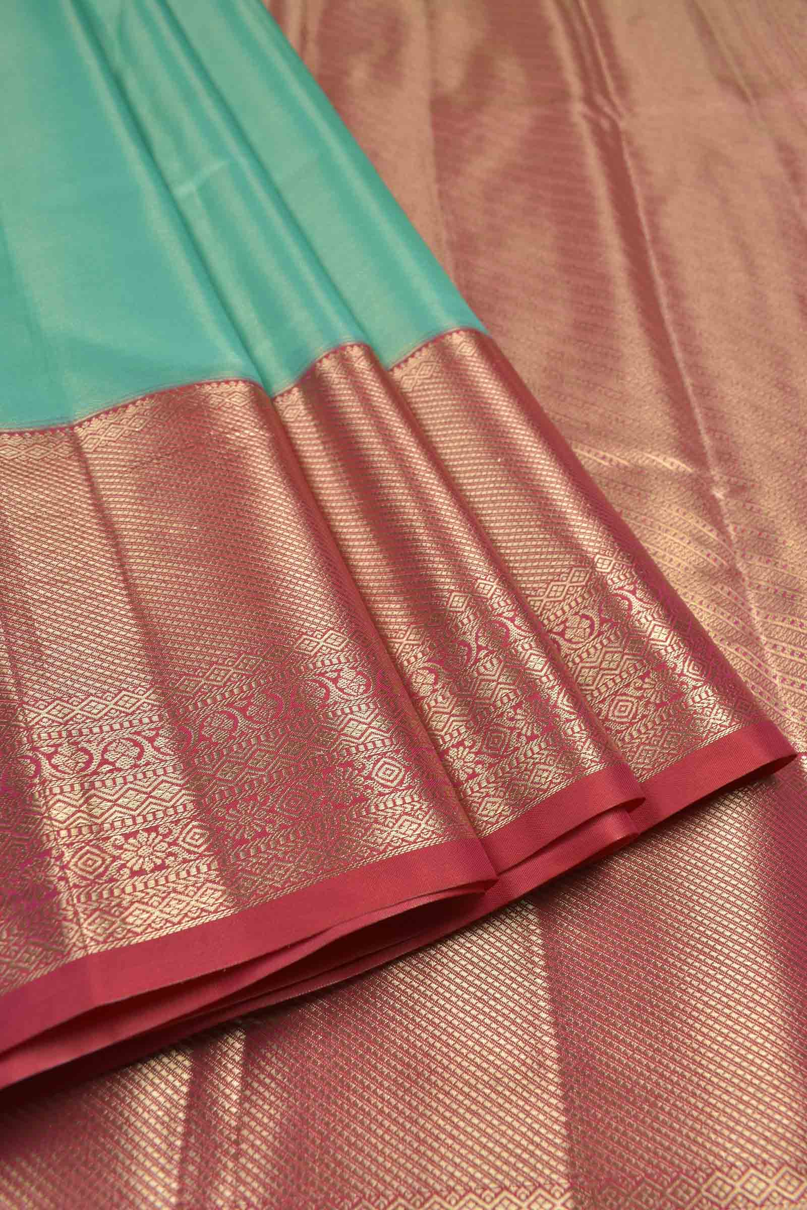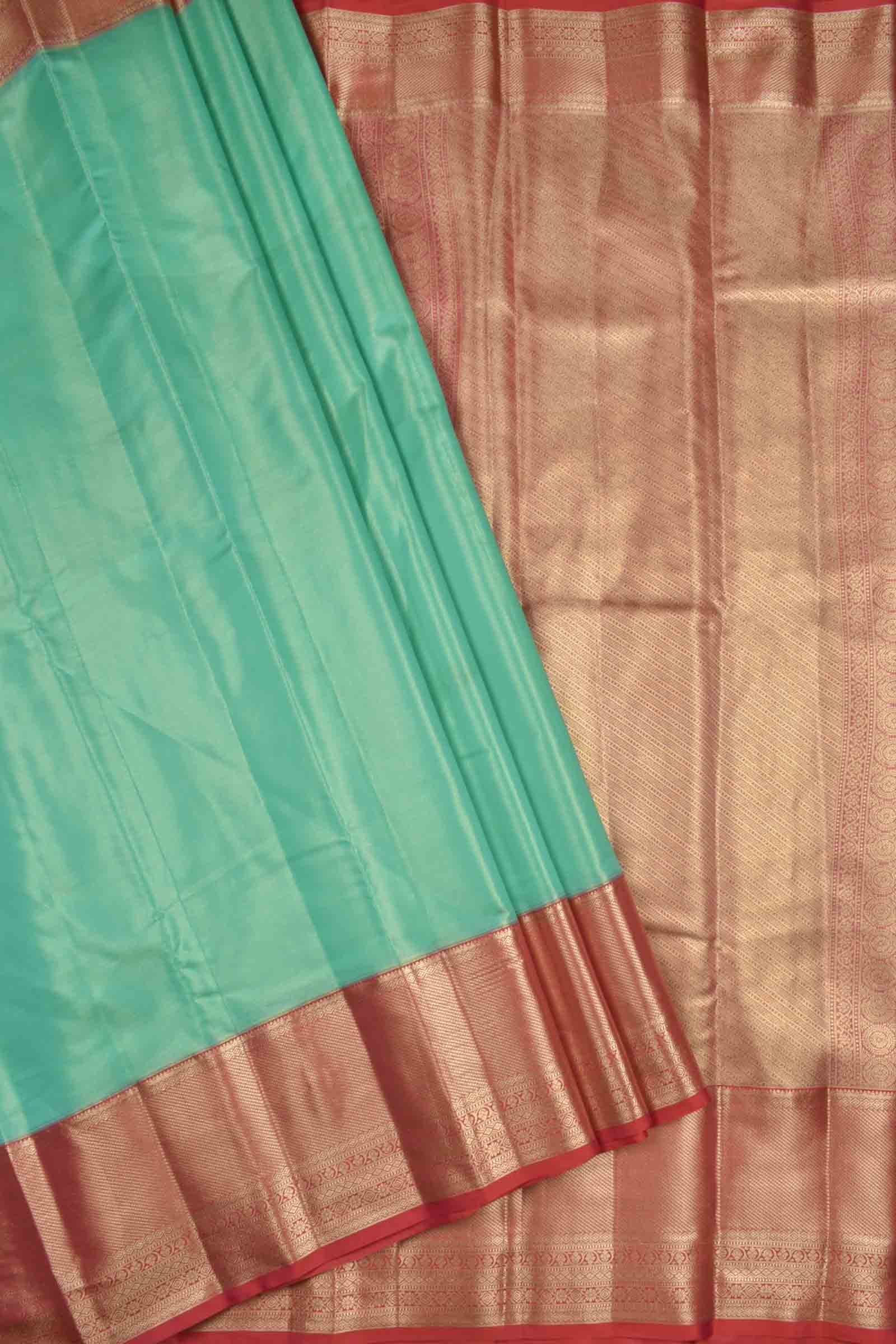 Golden Parrot Green Semi Silk Tissue Fancy Mini Zari Lines Contrast Zari Border Pallu Saree