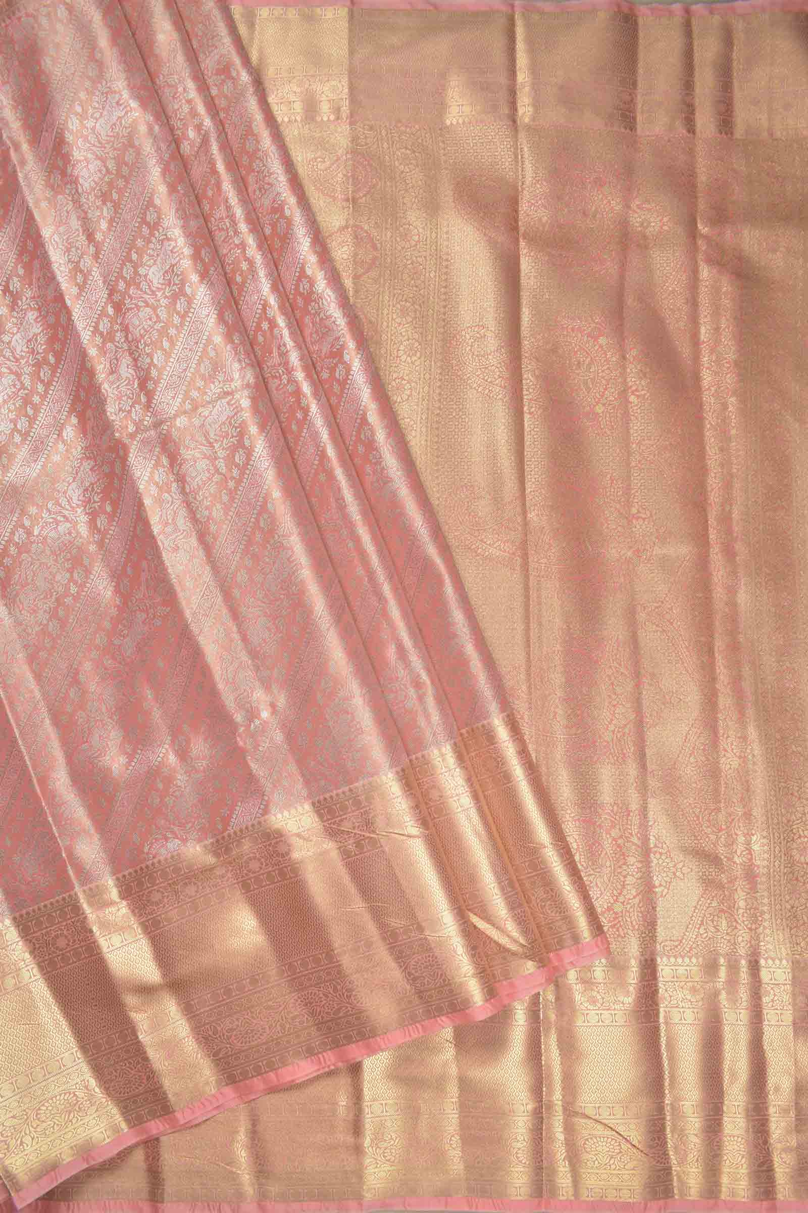Golden Light Pink Semi Silk Tissue Fancy Animals Print Saree