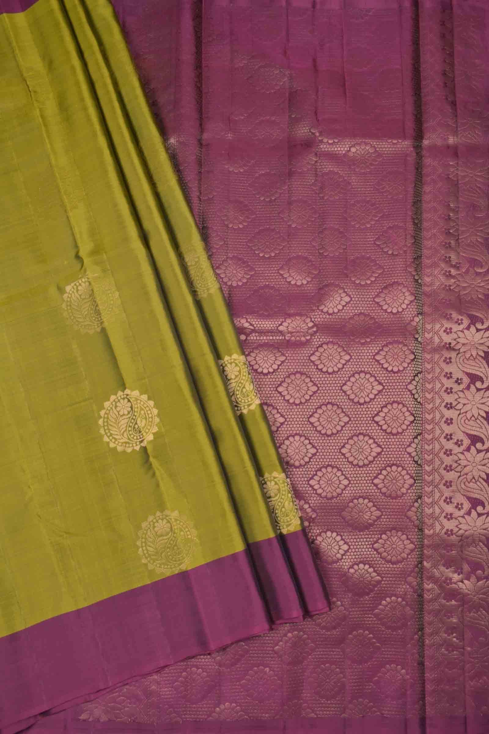 Olive Green Body Fancy Butta Burgundy Border Pallu Semi Soft Silk Saree