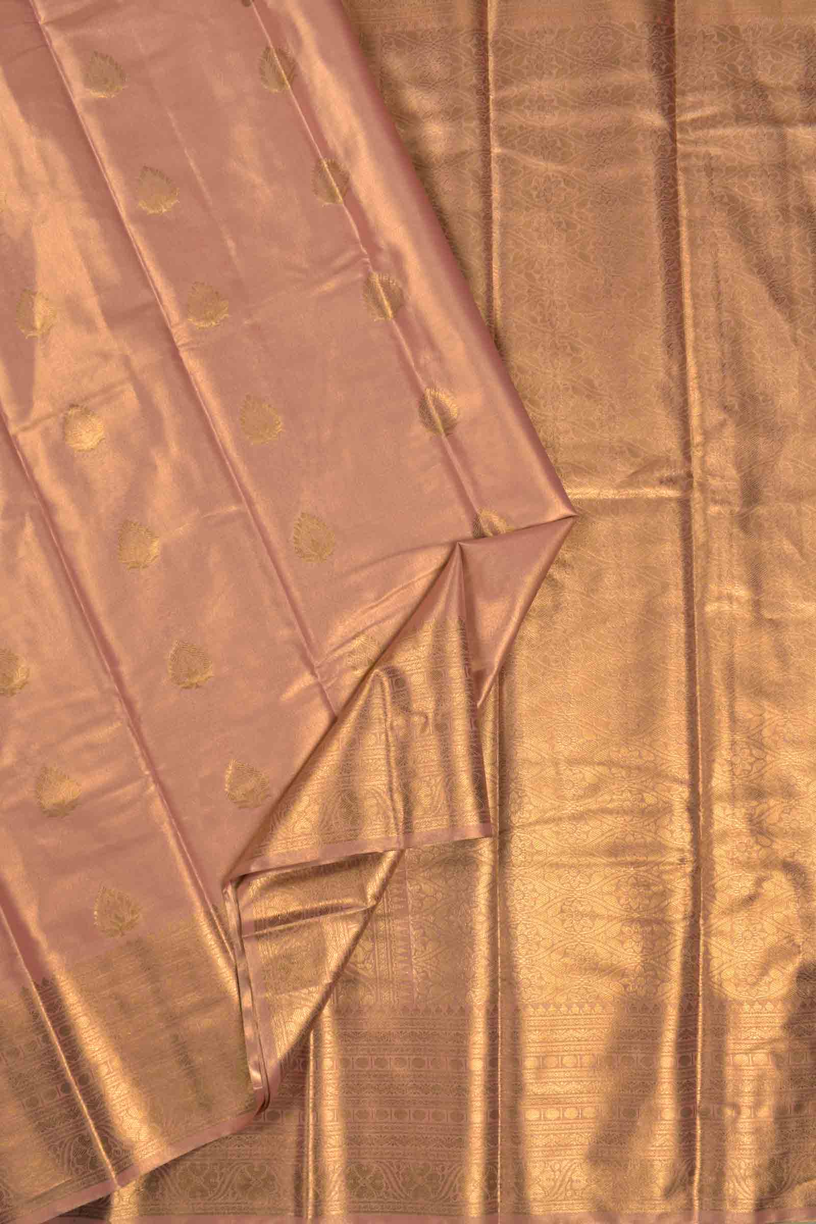 Golden Pink Semi Tissue Silk Fancy Butta Zari Border Pallu Saree
