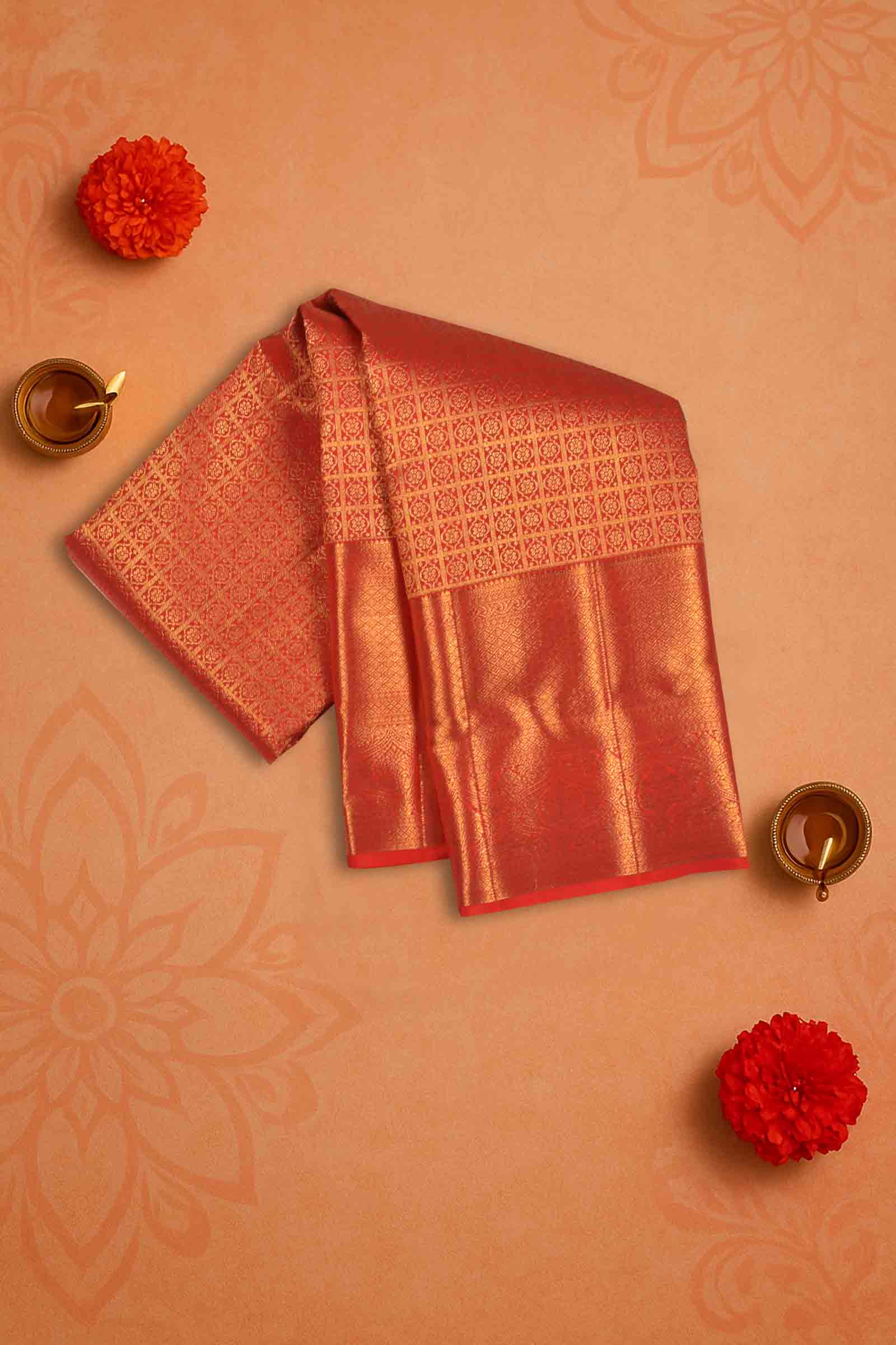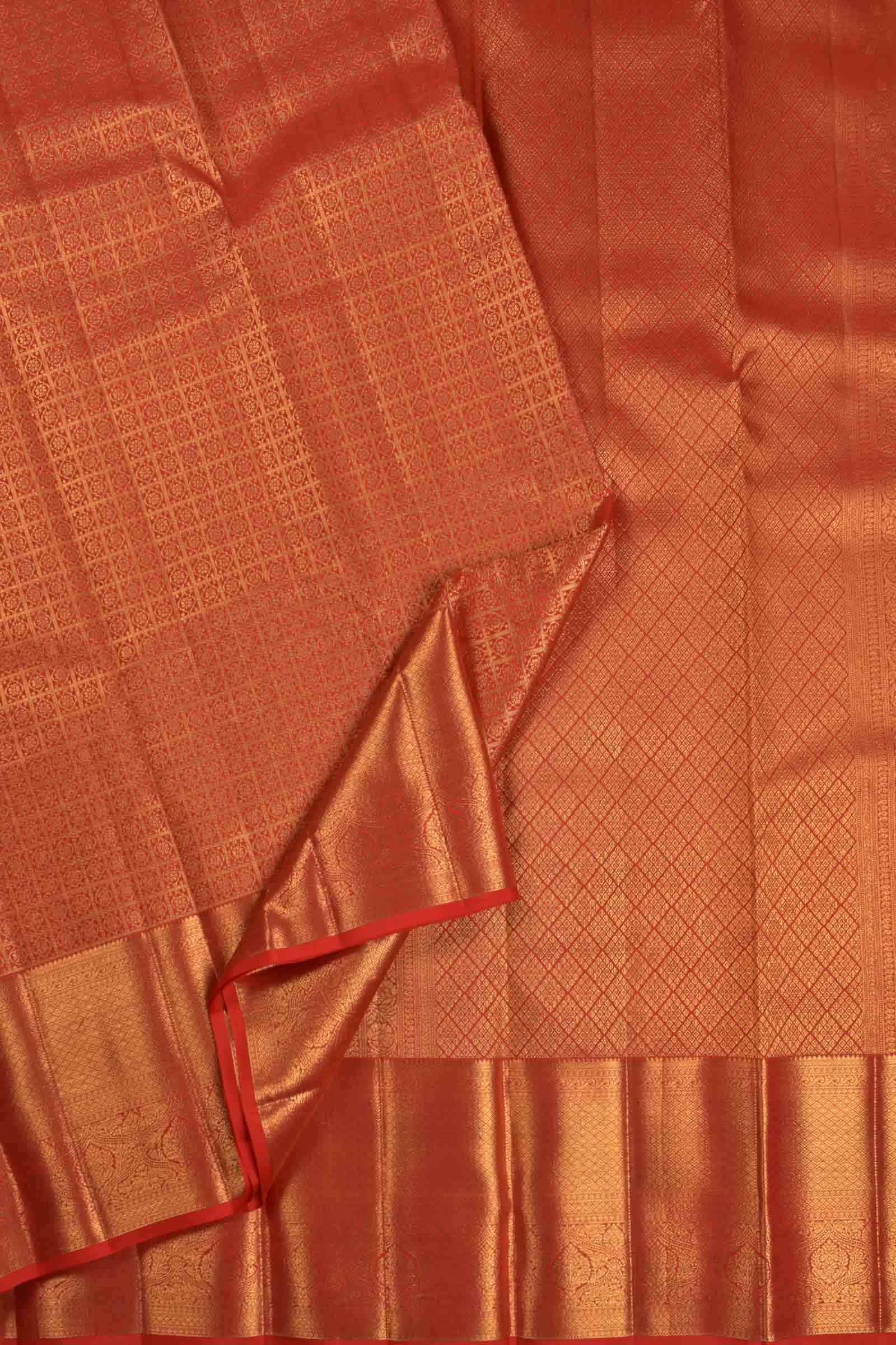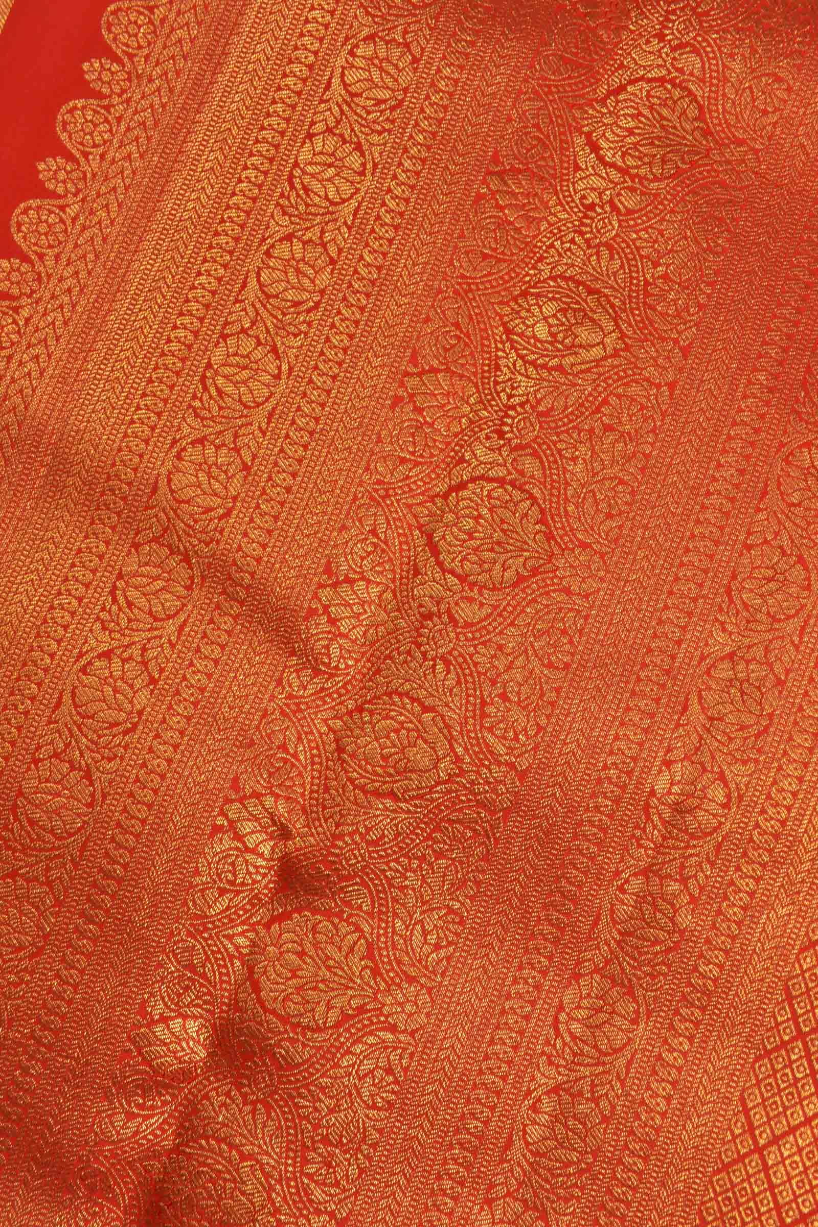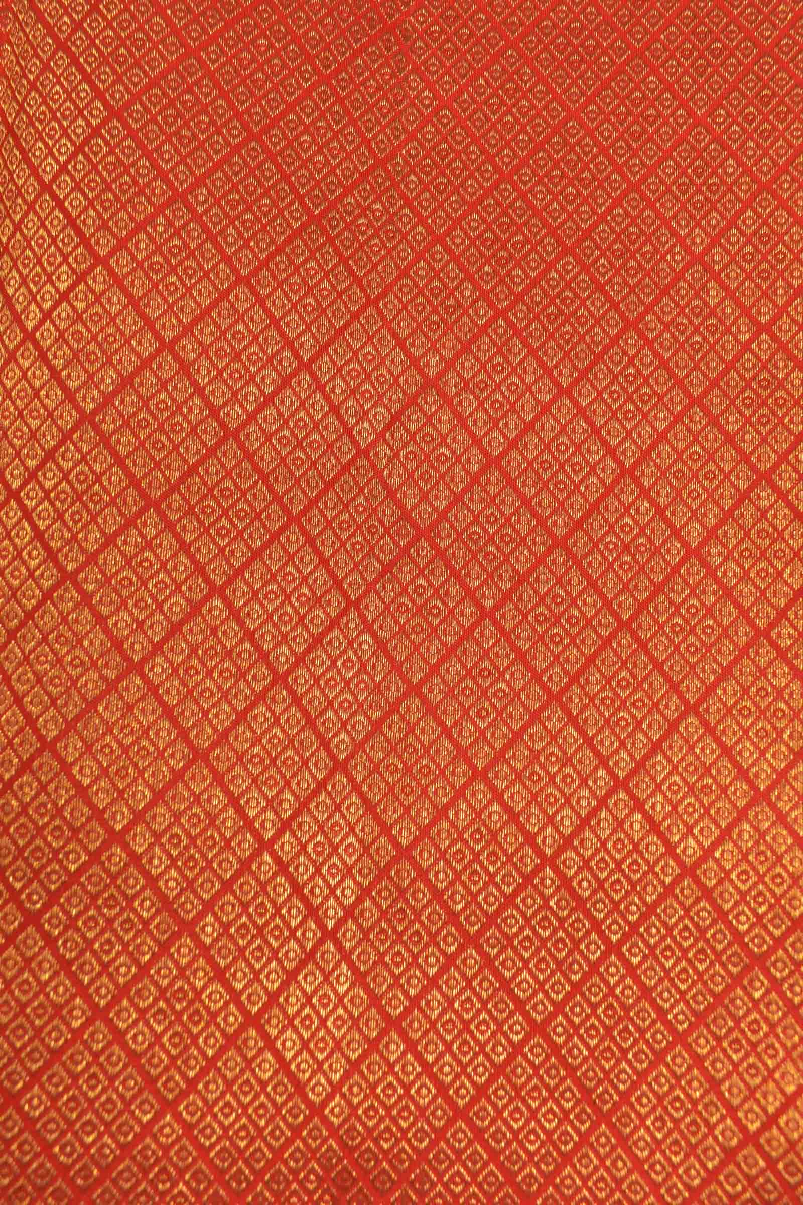 Golden Red Kanchipuram Bridal Pure Silk Traditional Checks Golden Zari Border Saree NAA114
