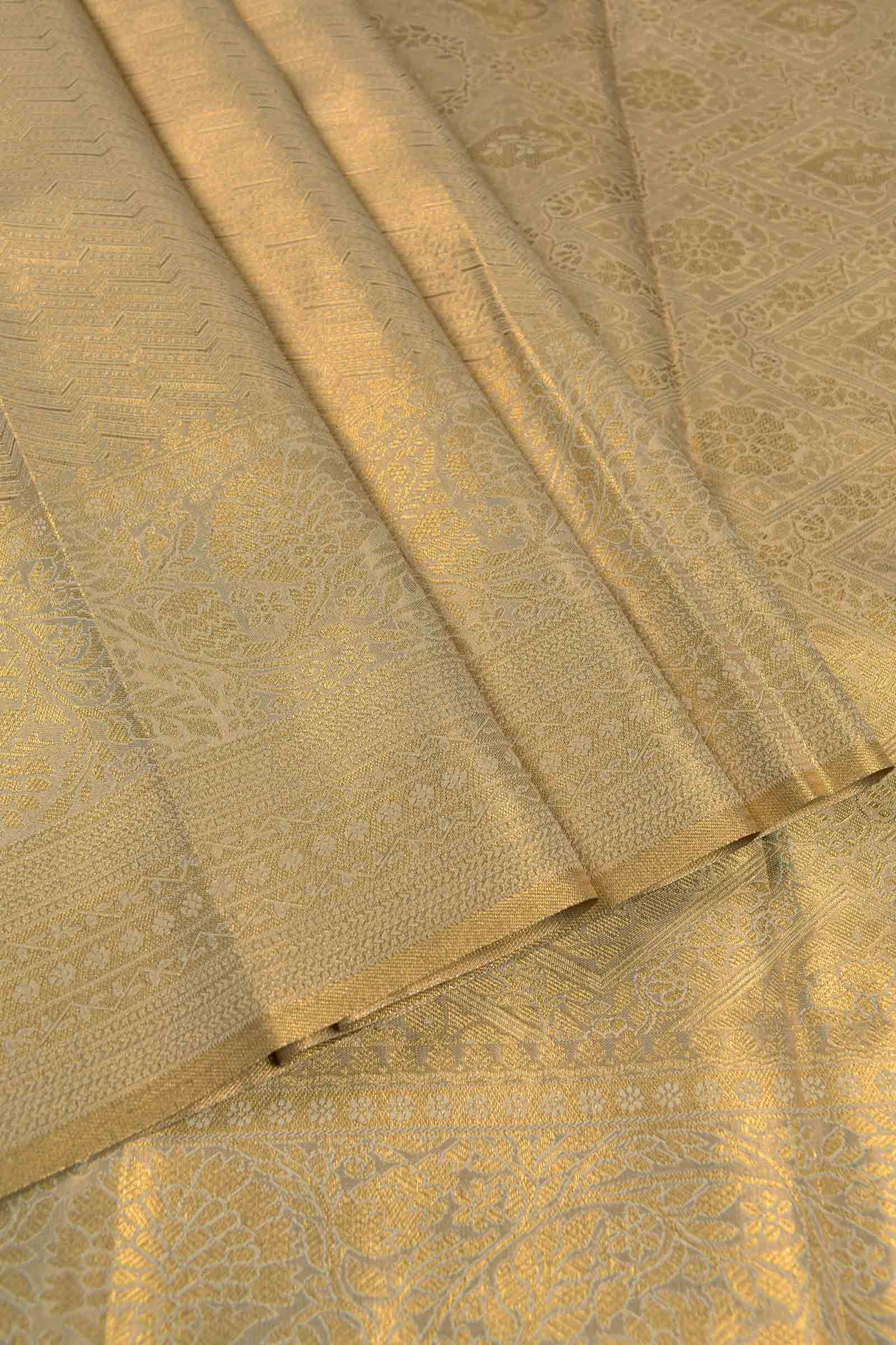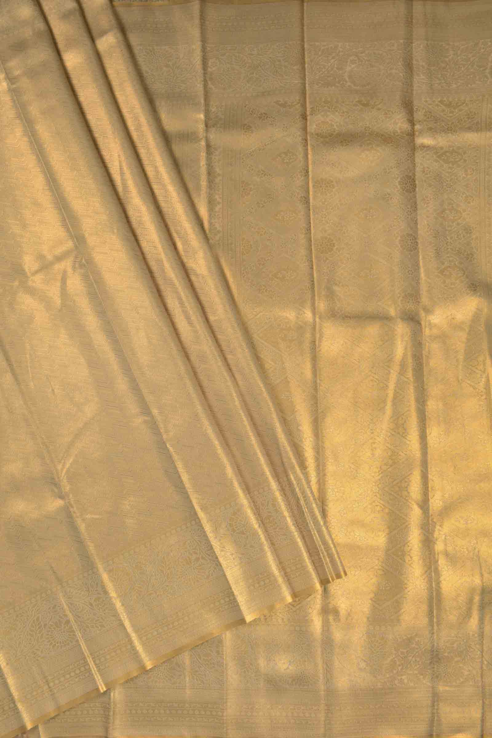 Golden Semi Tissue Silk Fancy Print Zari Border Saree