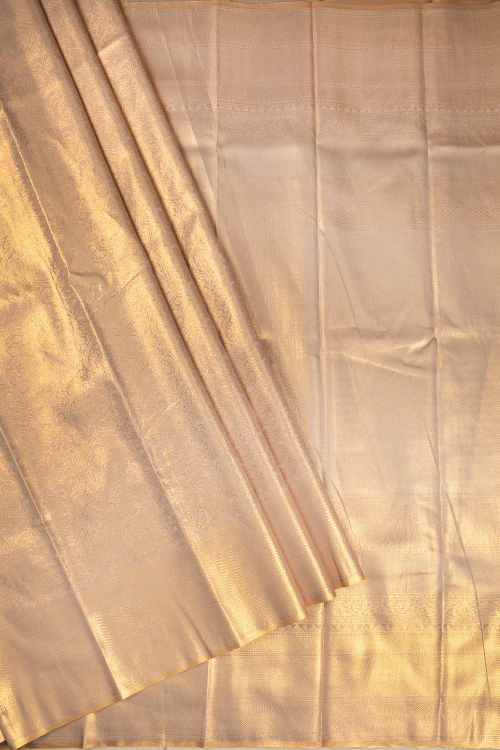 Golden Semi Tissue Silk Fancy Print Zari Border Pallu Saree