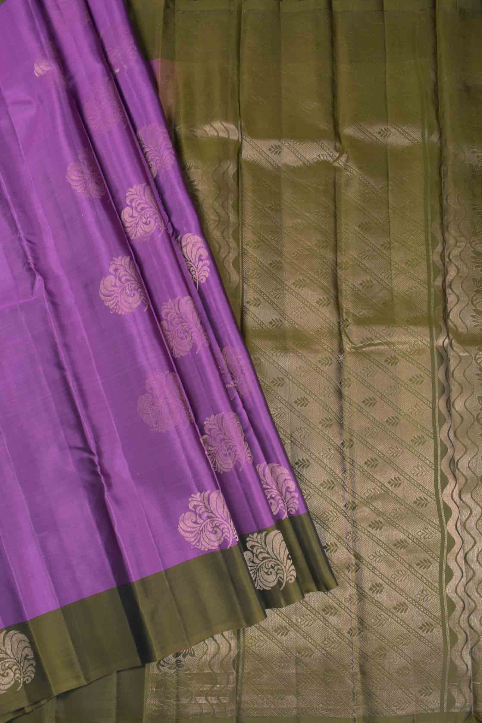 Violet Body Fancy Florlas Dark Olive Green Border Pallu Semi Soft Silk Saree