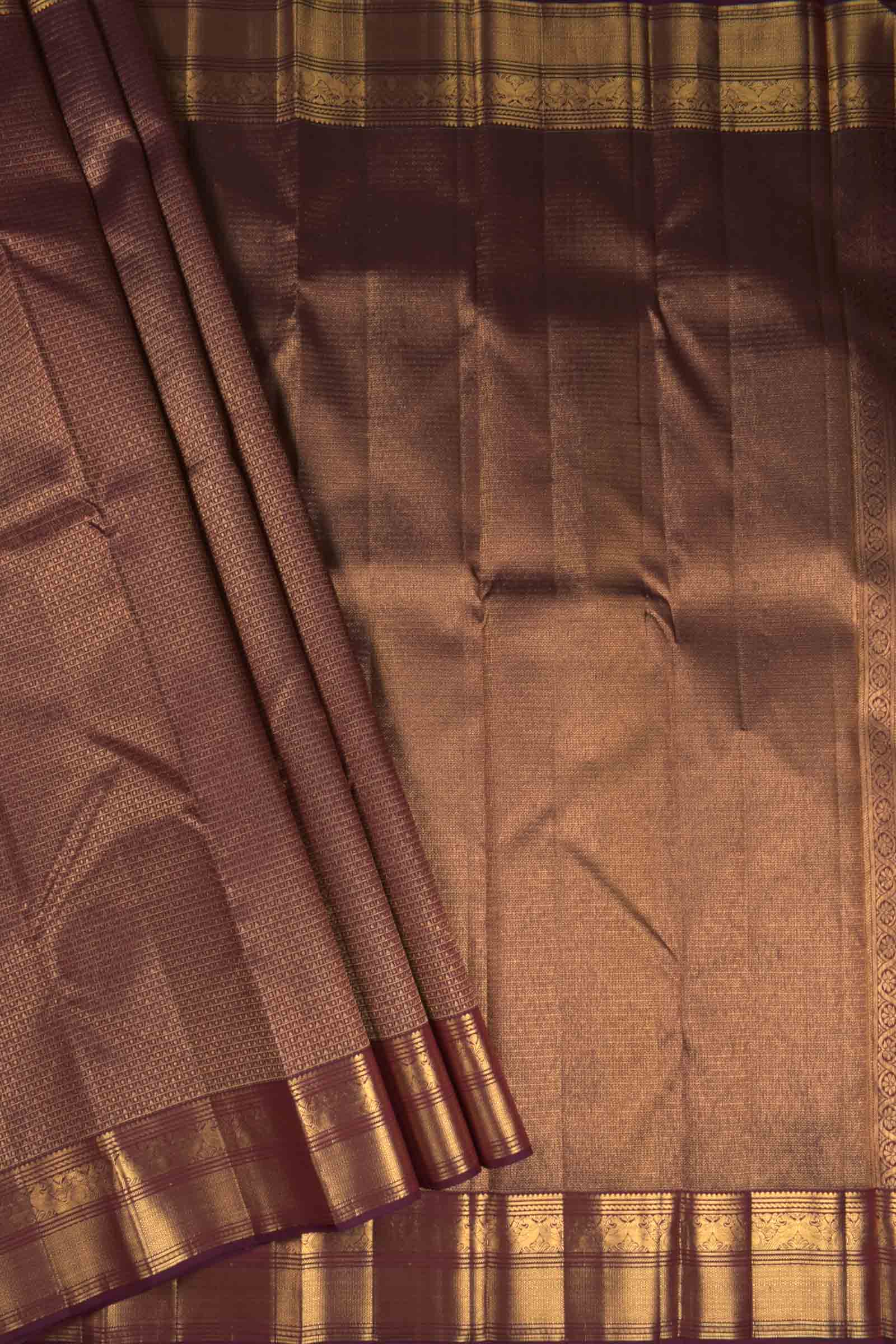 Deep Plum Maroon Kanchipuram Bridal Pure Silk Mini Intricate Checks Golden Zari Border Saree NAA101