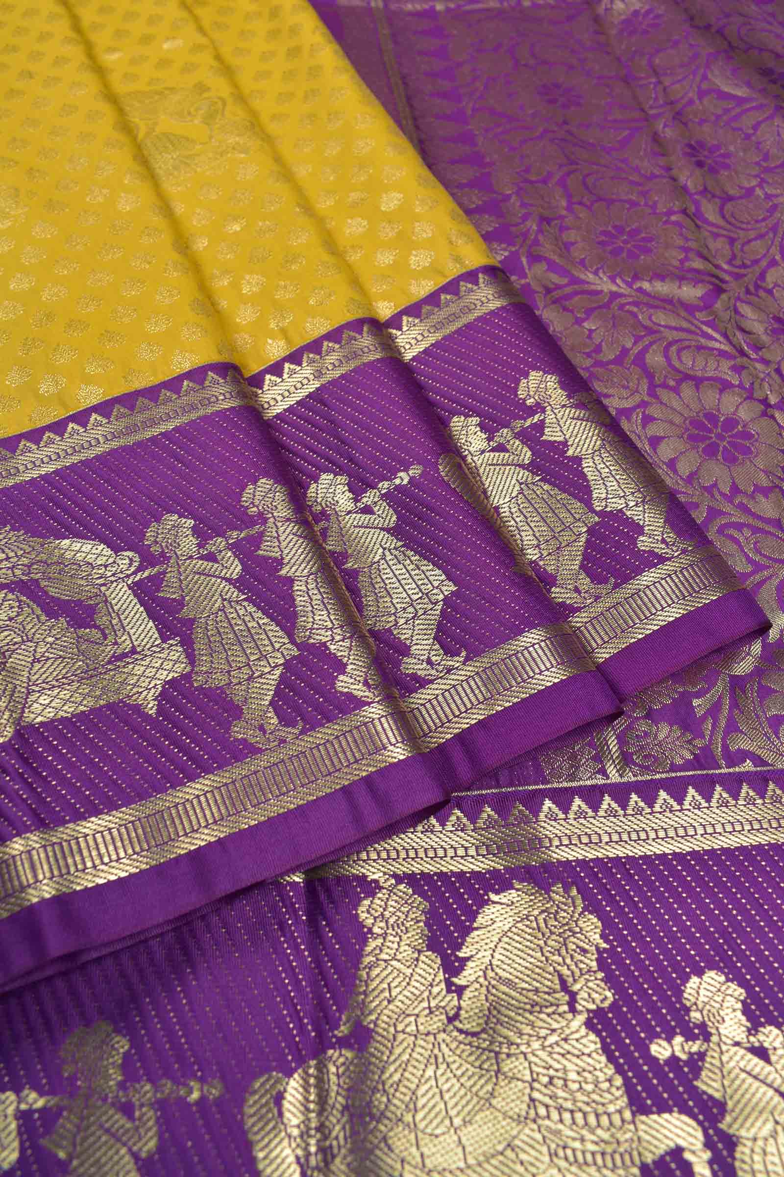 Golden Yellow Semi Silk Contrast Palanquin Border Pallu Saree