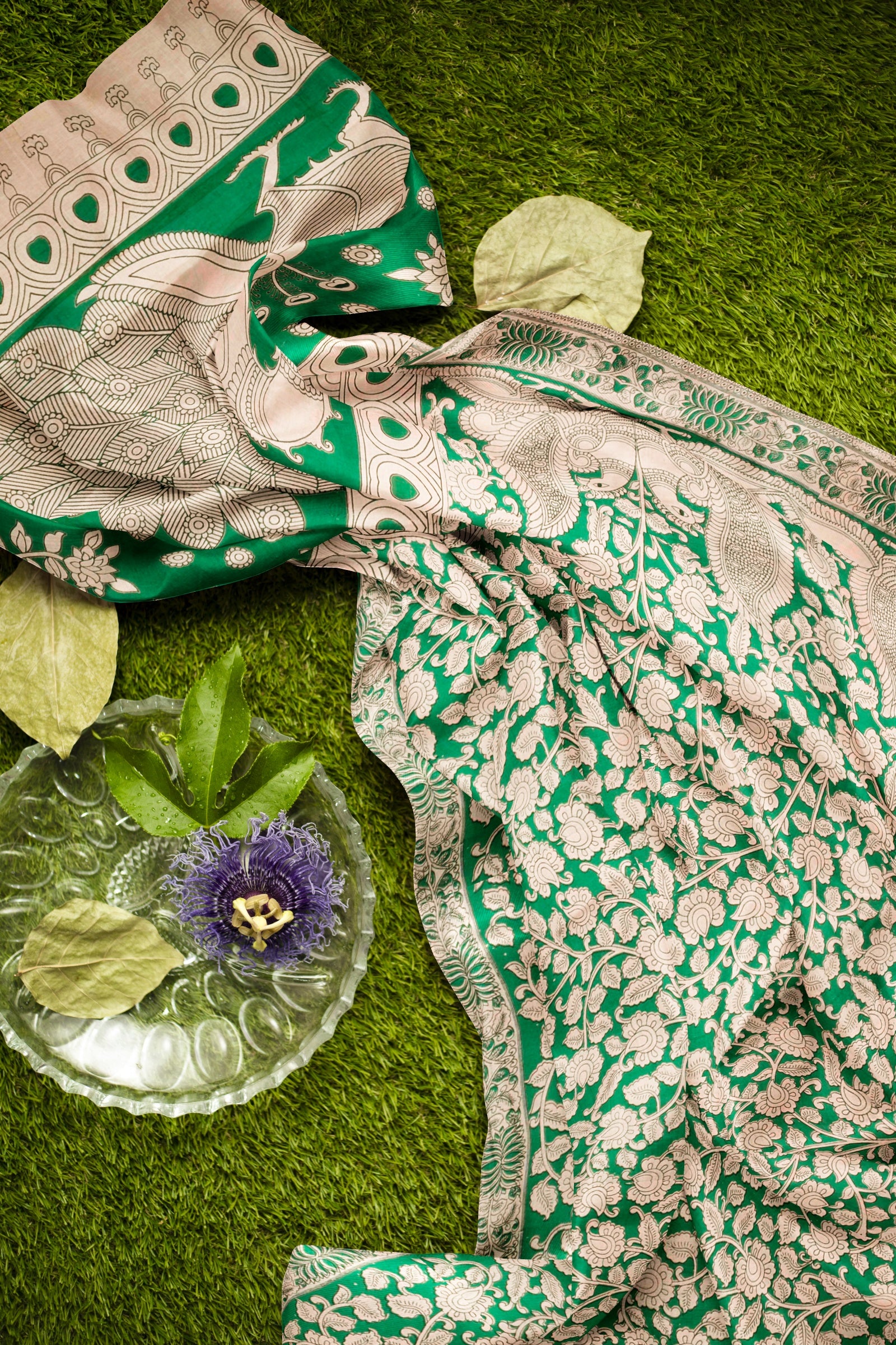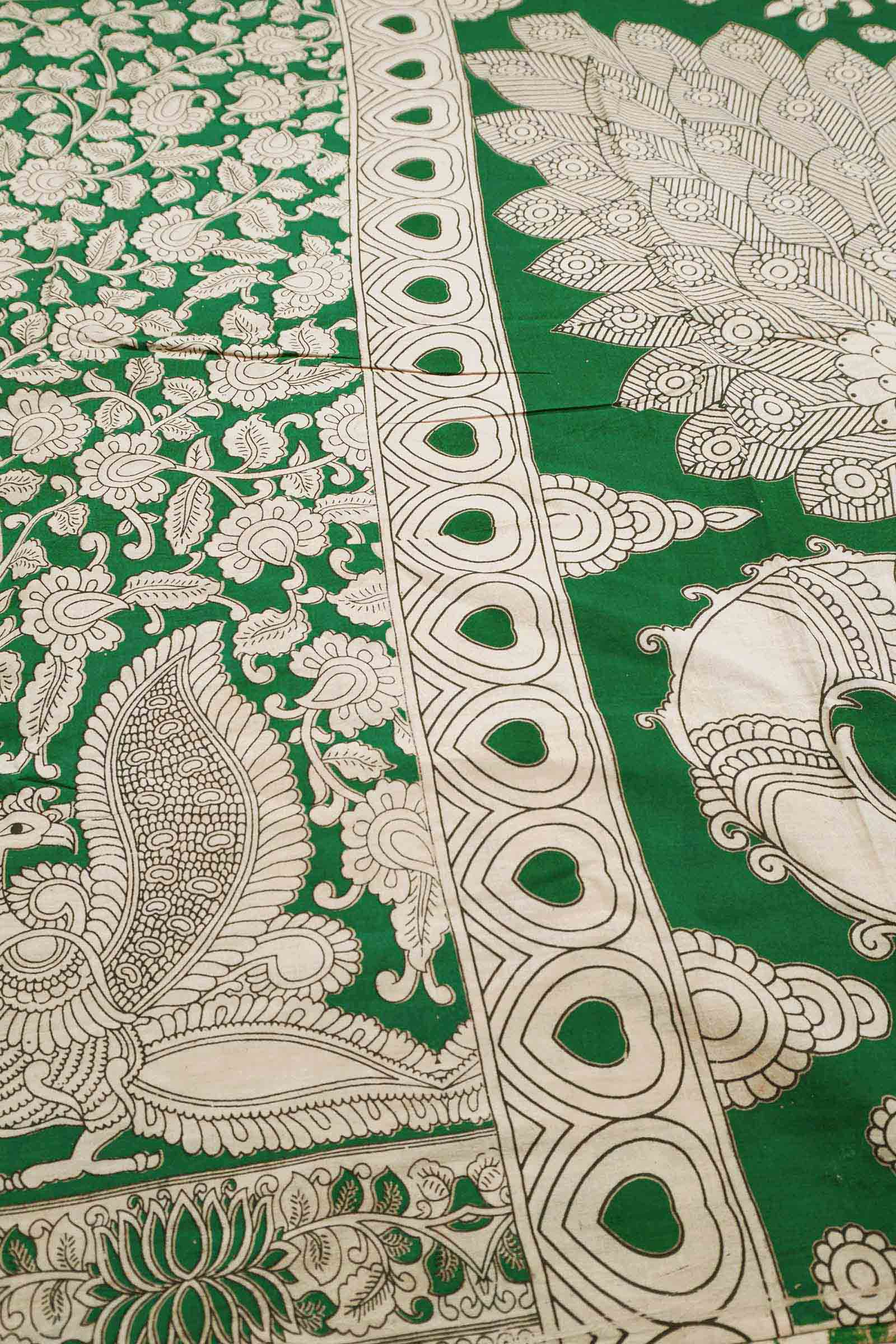 Green Kalamkari Pure Cotton Kalamkari Florals Peacock Pallu Saree