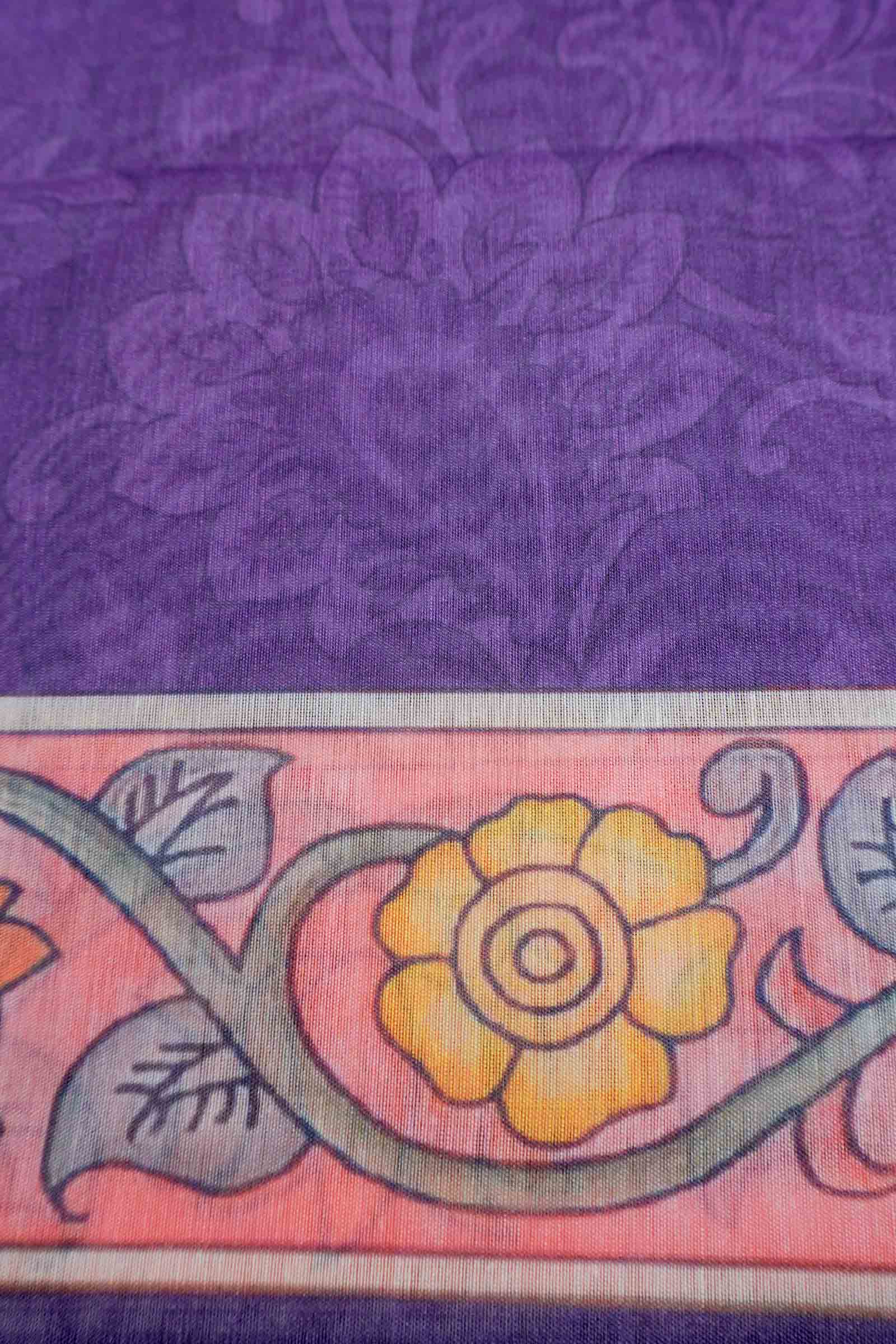 Violet Semi Chanderi Floral Border Kalamkari Inspired Pallu Saree