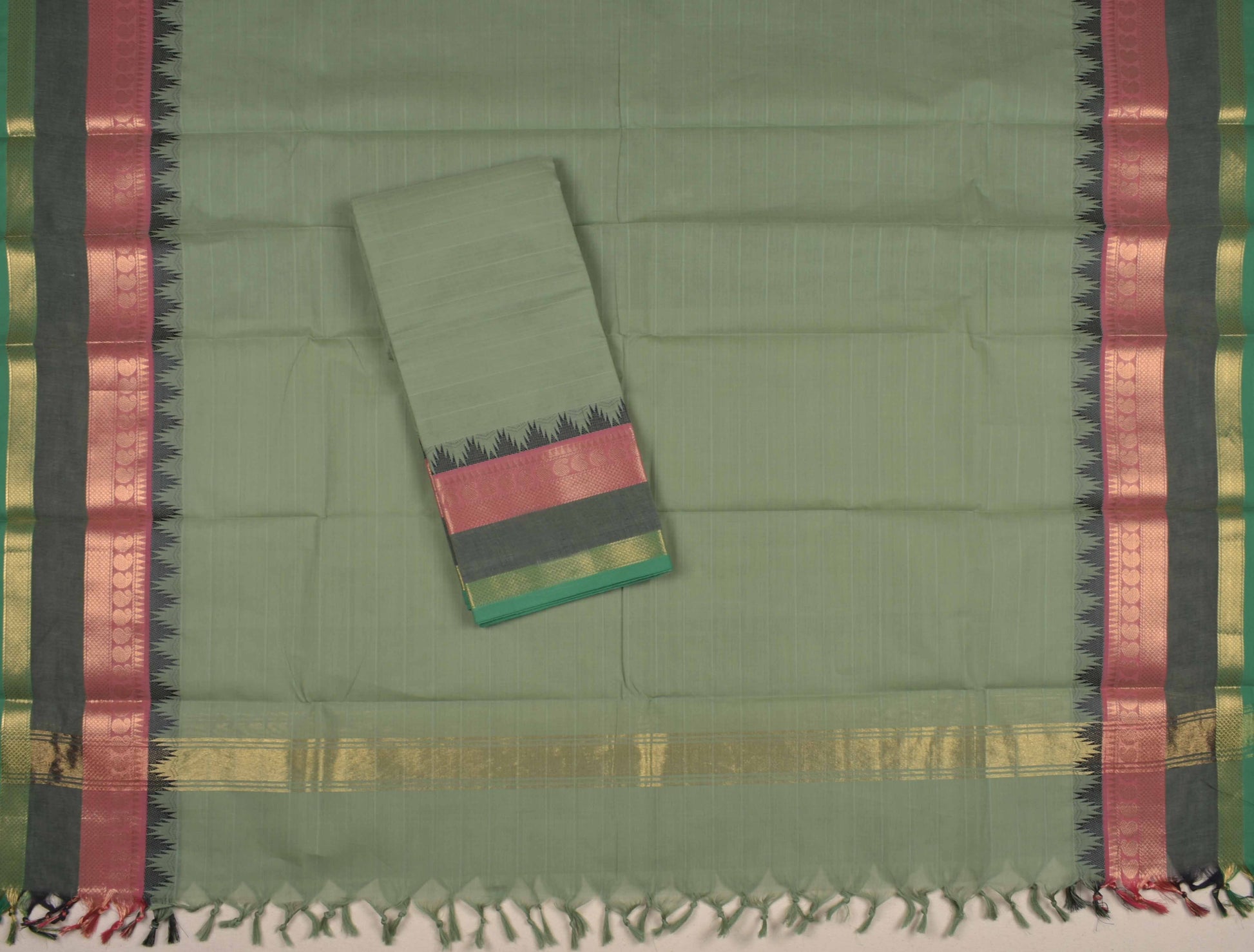 Green Pure Chettinad Cotton Chudithar Material Zari Mango Border Suit