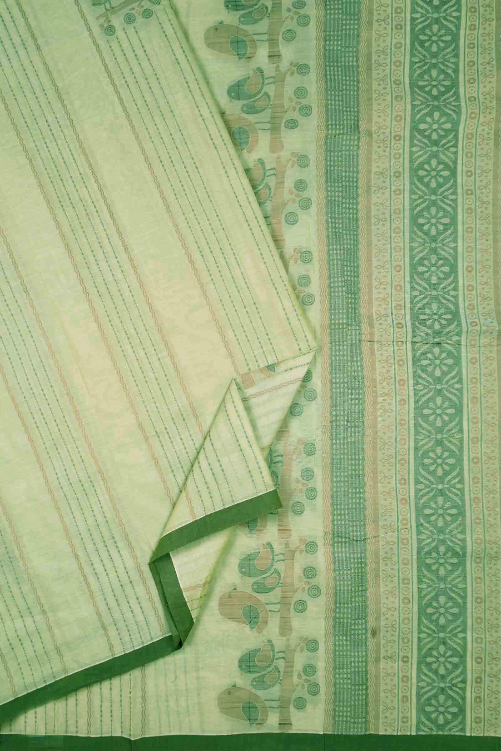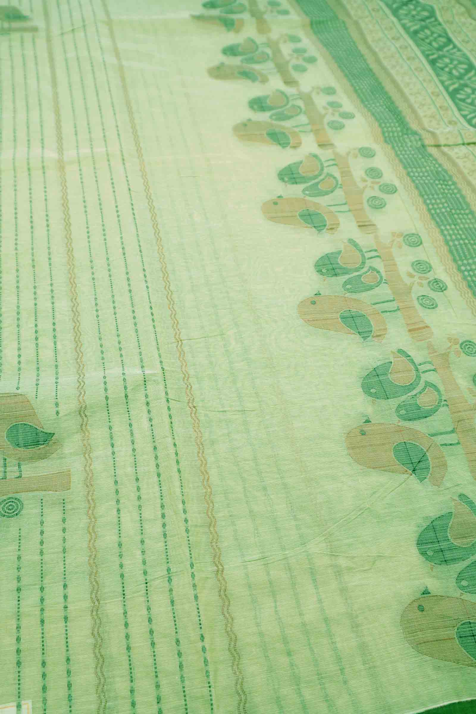 Light Green Pure South Cotton Lil Birds Butta Saree