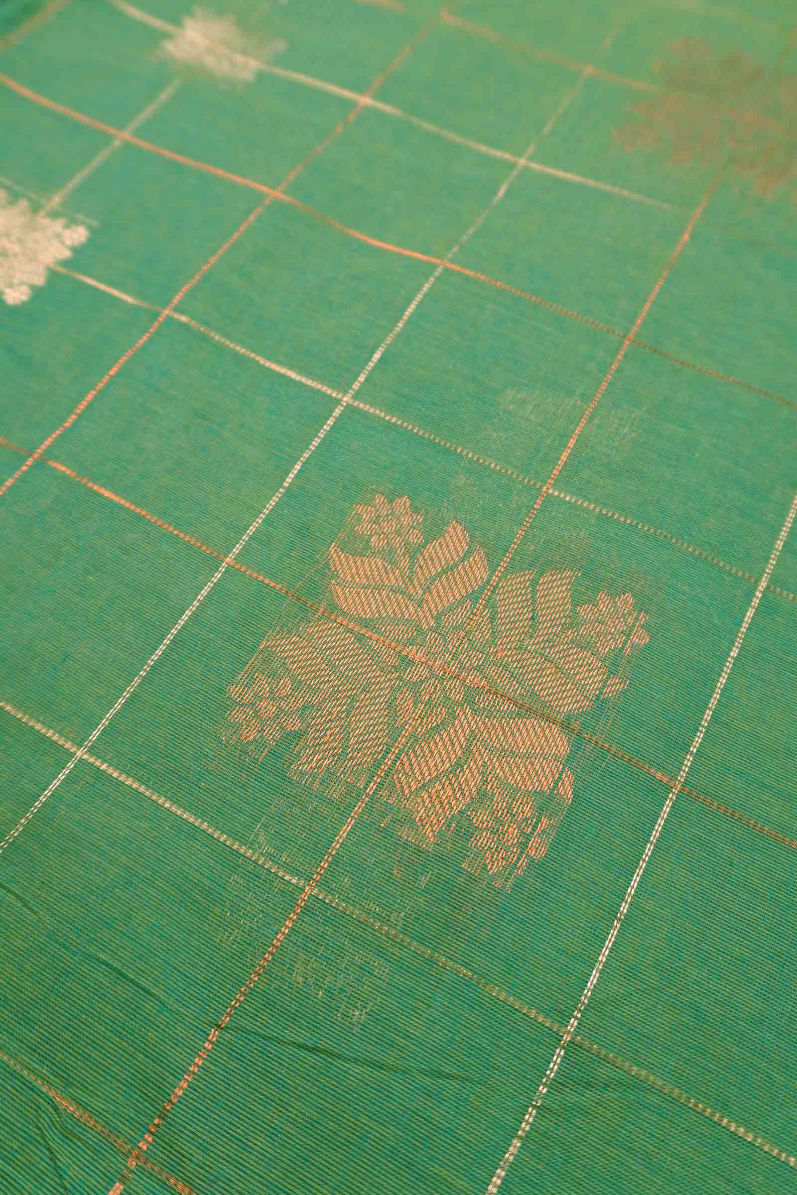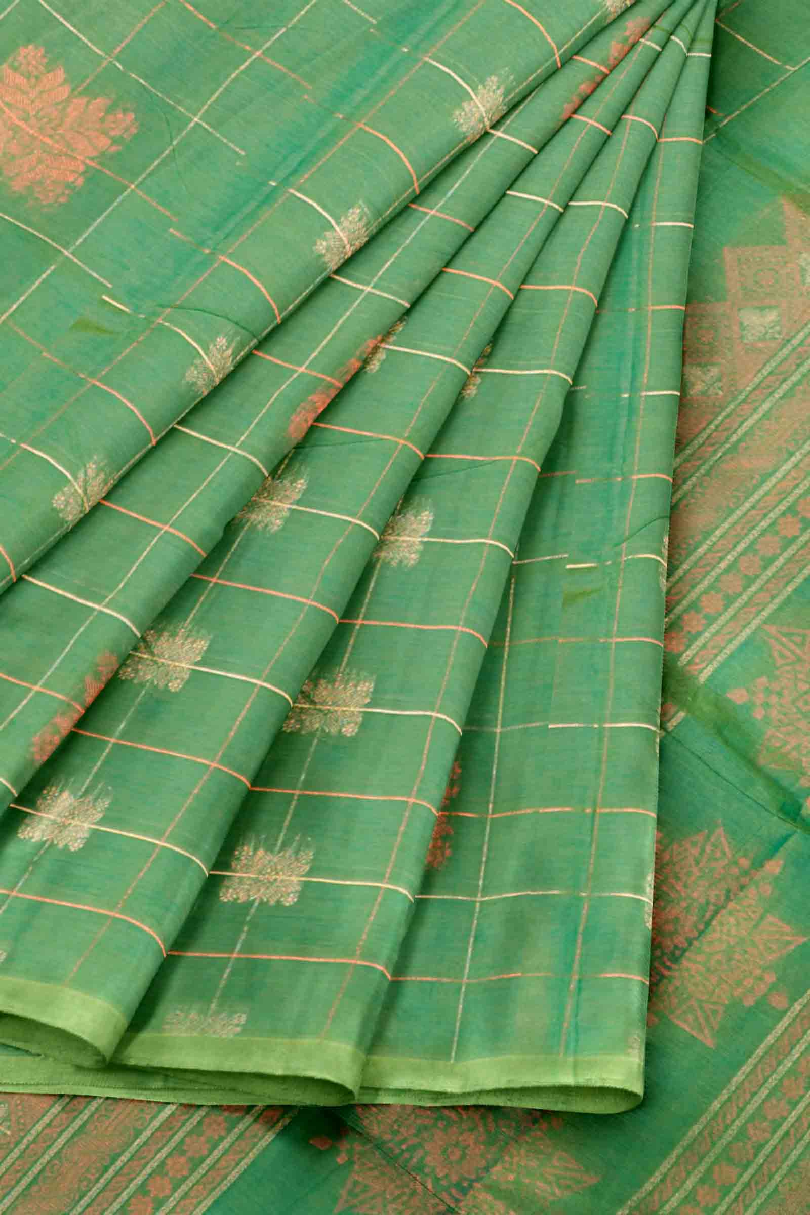 Green Pure South Cotton Zari Checks Star Pallu Saree