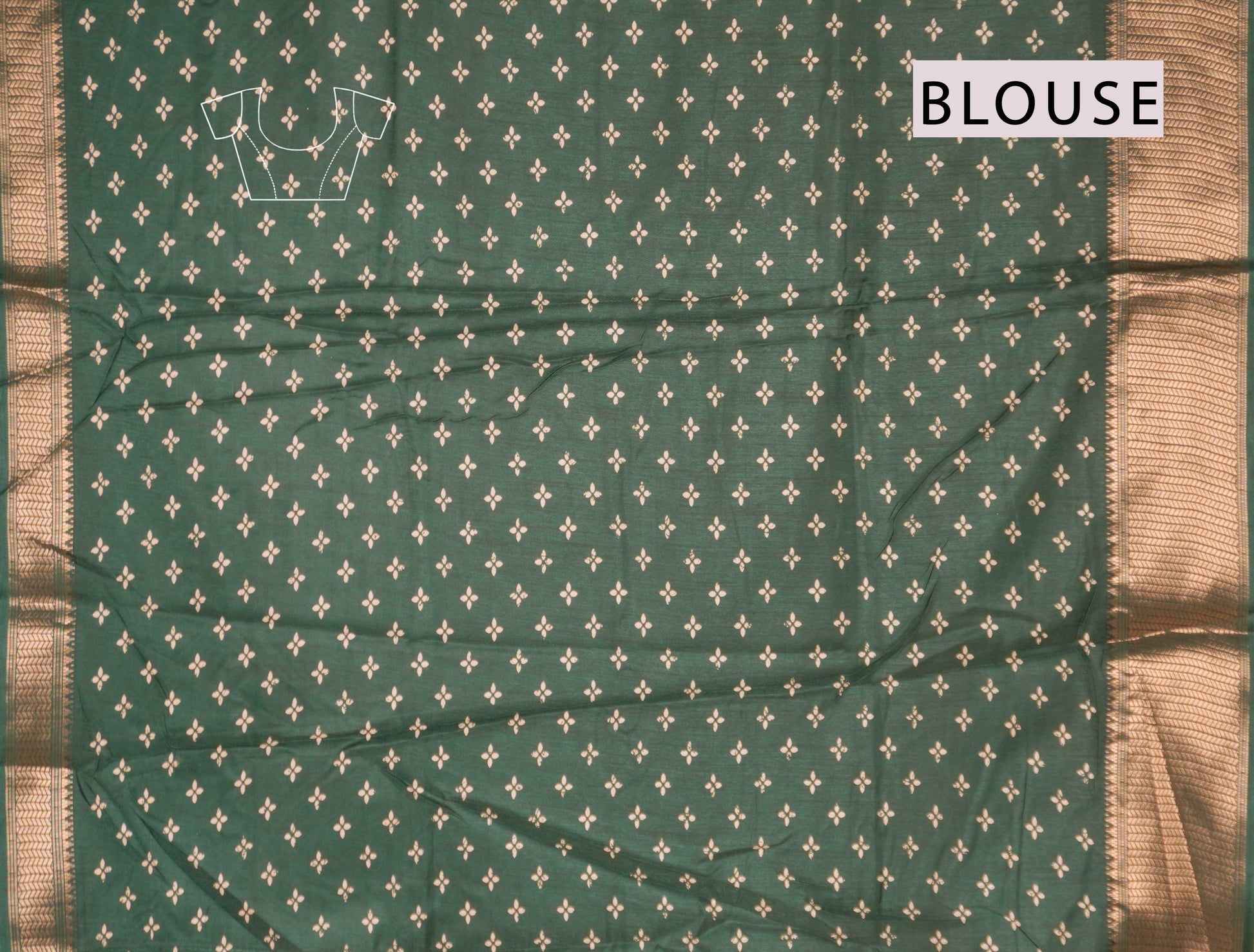Green Semi Dola Floral Frames Print Zari Border Saree