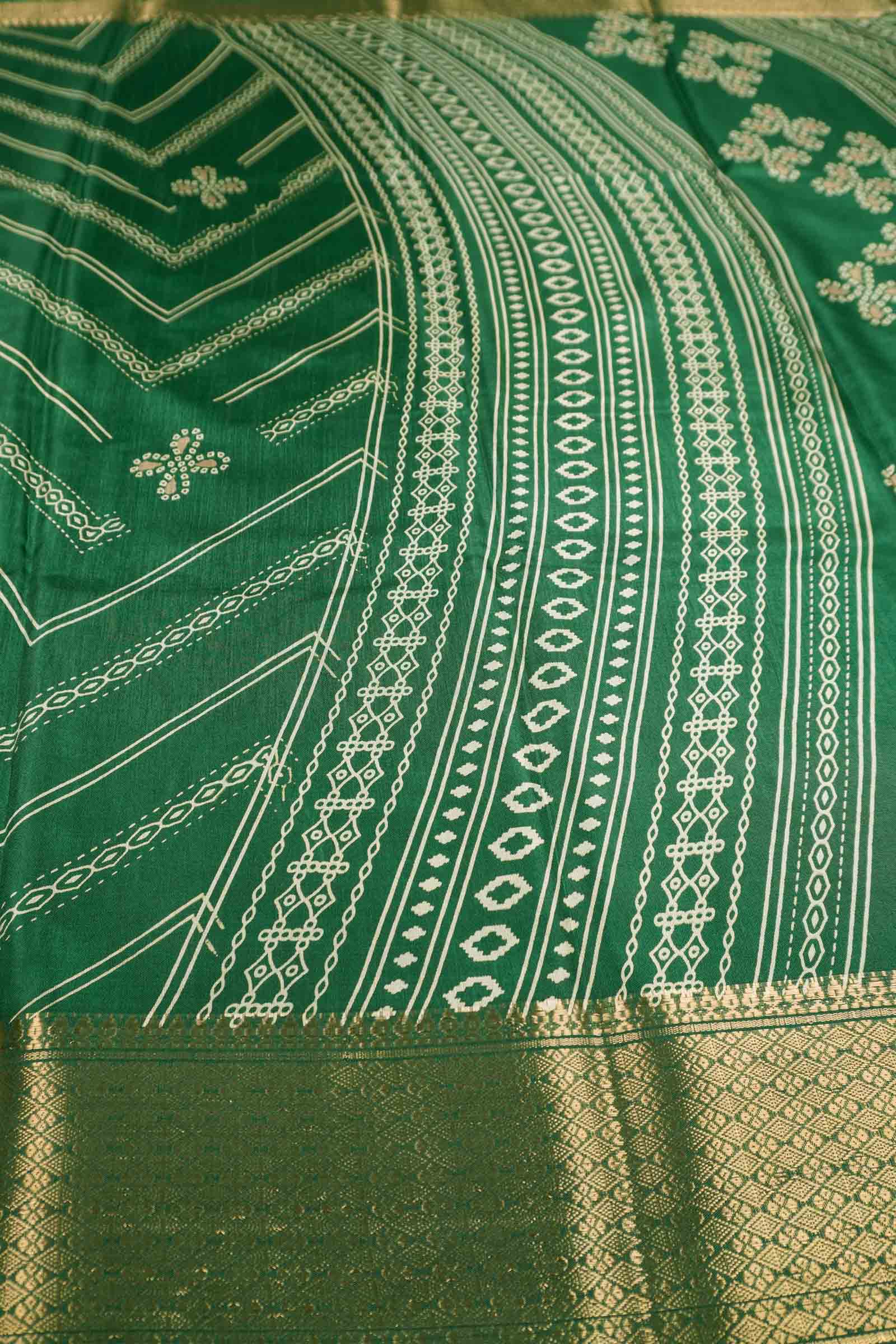Green Semi Dola Fancy Stripes Print Zari Border Saree