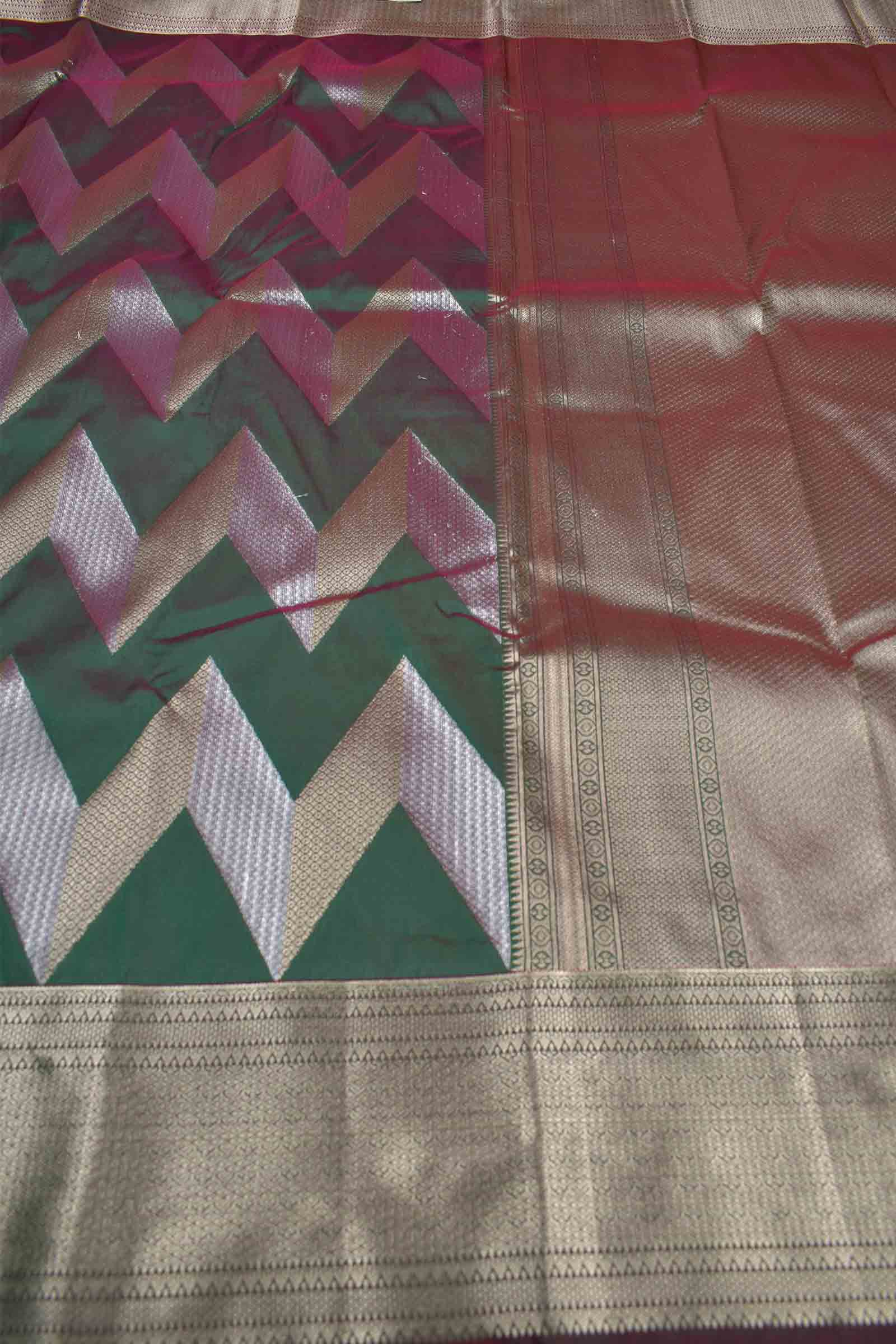 Green Semi Silk Fancy Waves Zari Border Pallu Saree
