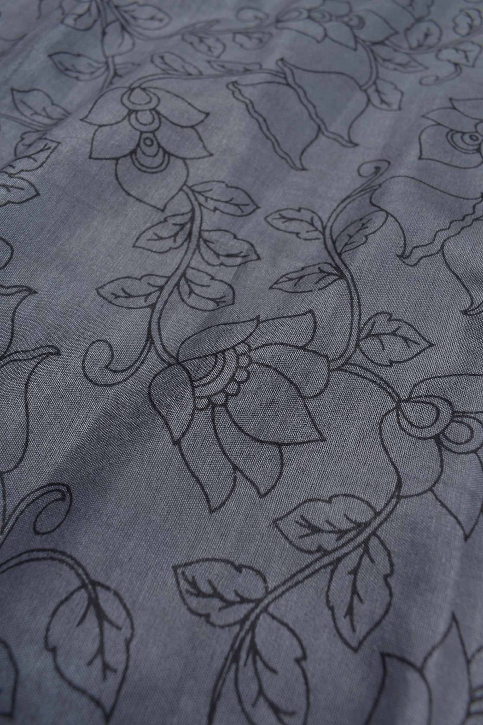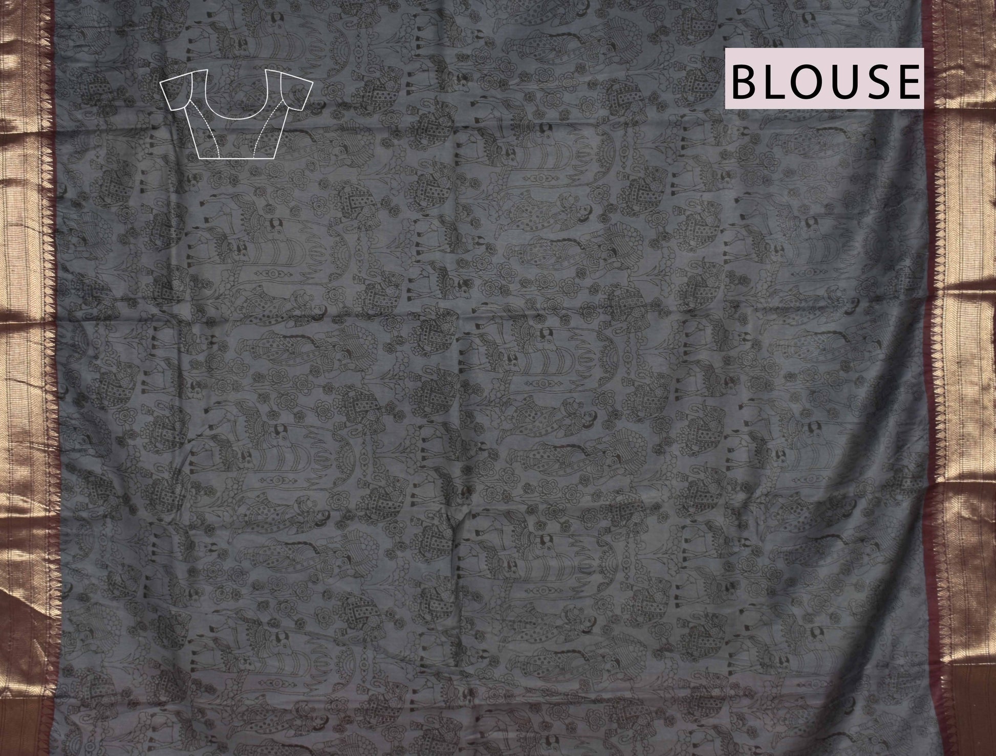 Grey Bengal Cotton Kalamkari Style Zari Border Peacock Pallu Saree
