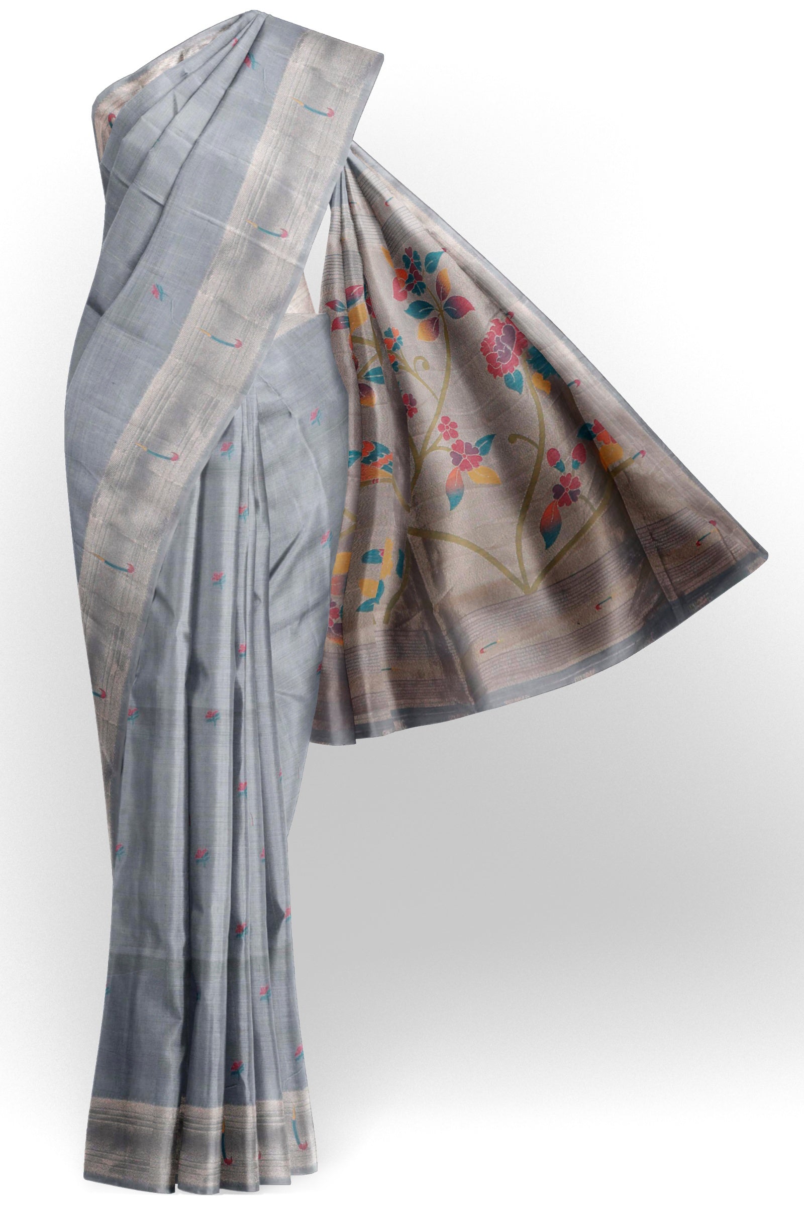 Grey Bengal Cotton With Paithani Inspired Fusion Saree