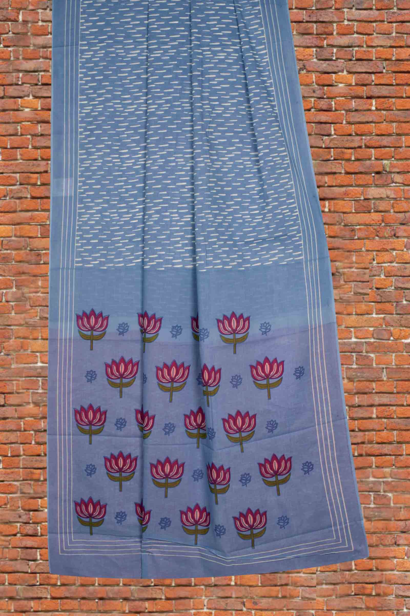 Light Blue Jaipur Cotton Rain Drops Printed Lotus Pallu Saree