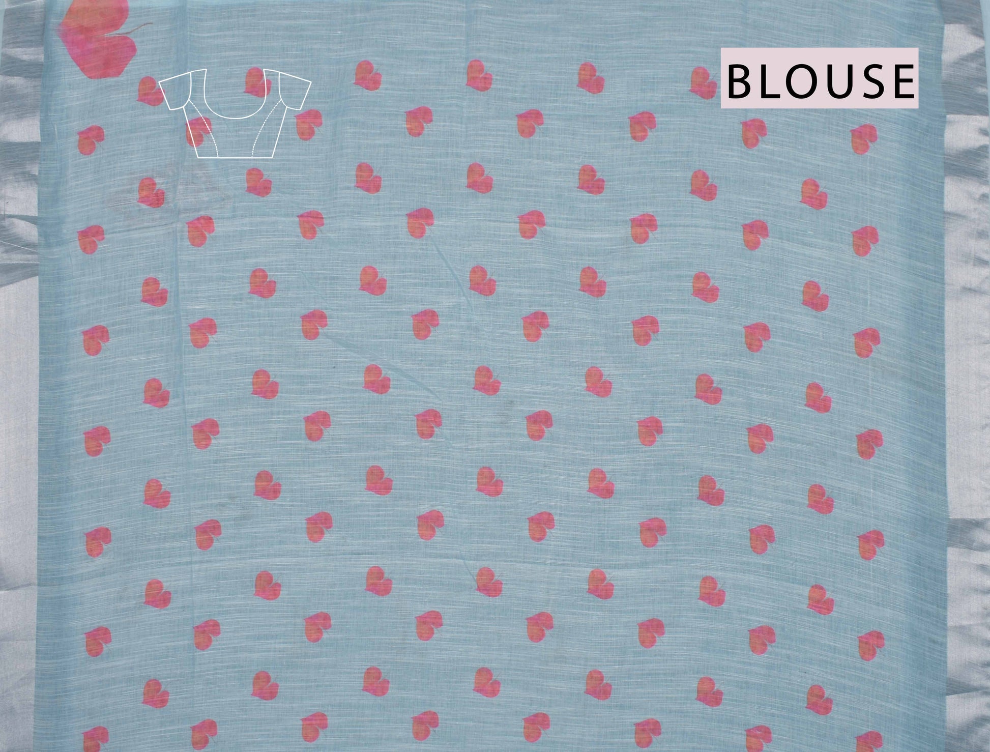 Light Blue Semi Linen Peach Hearts Digital Print Saree