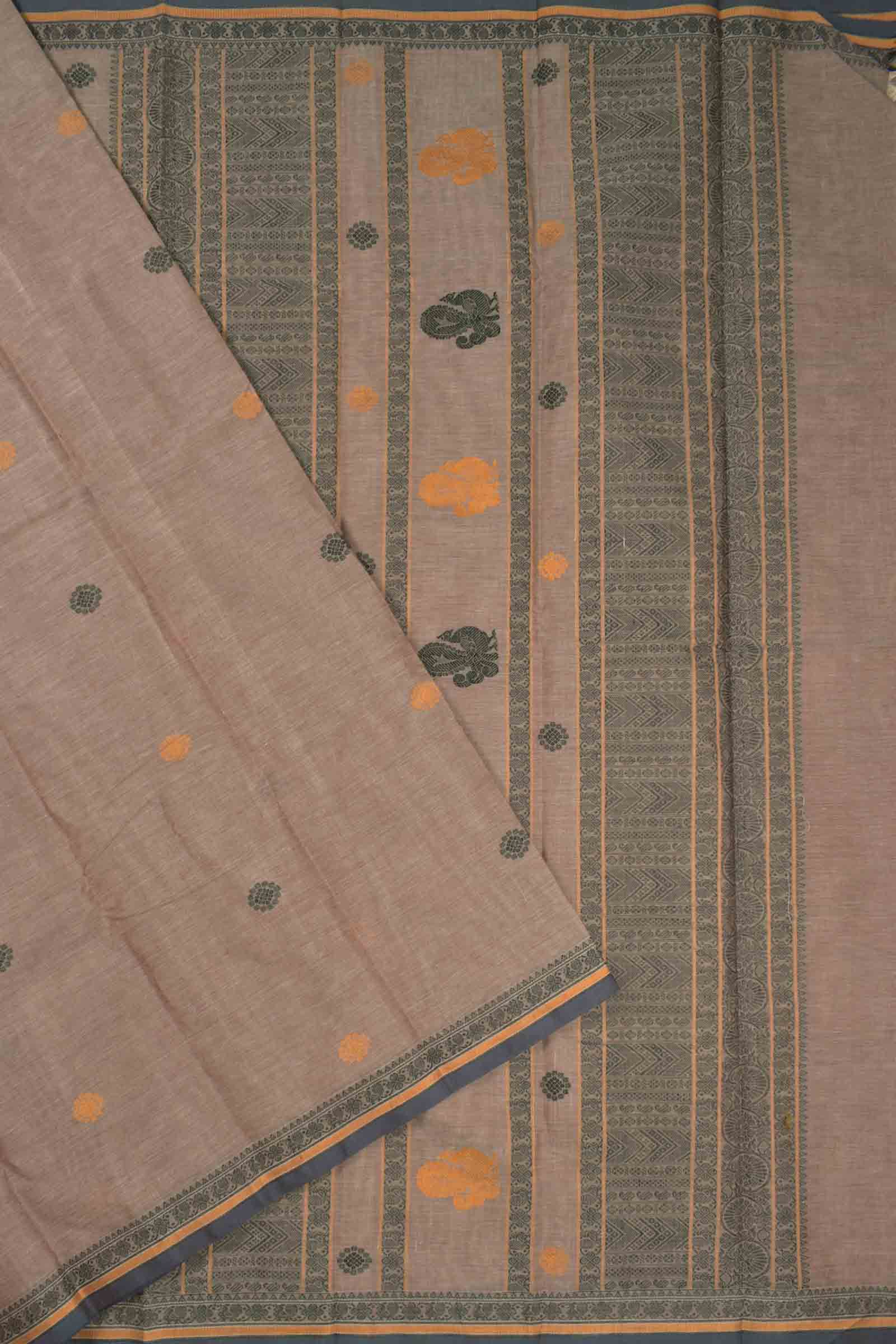 Light Brown Kanjivaram Pure Cotton Multi Thread Butta Peacock Pallu Saree