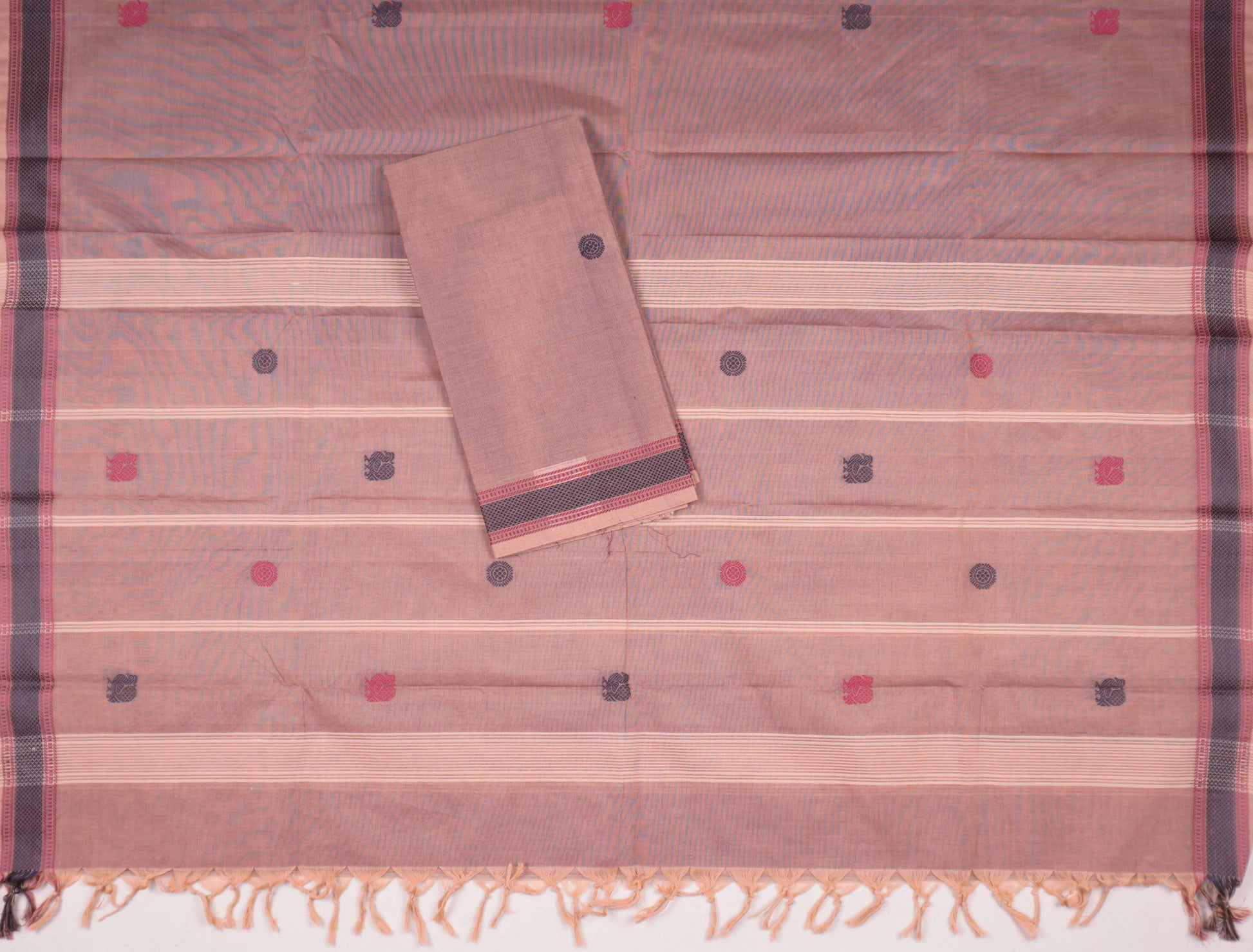 Light Brown Pure Chettinad Cotton Chudithar Material Peacock Butta Suit